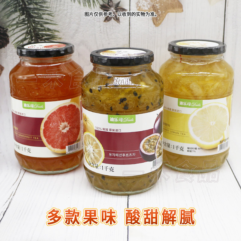 韩国进口迪乐司多口味果肉饮品1000g罐装蜂蜜柚子柠檬红西柚饮品
