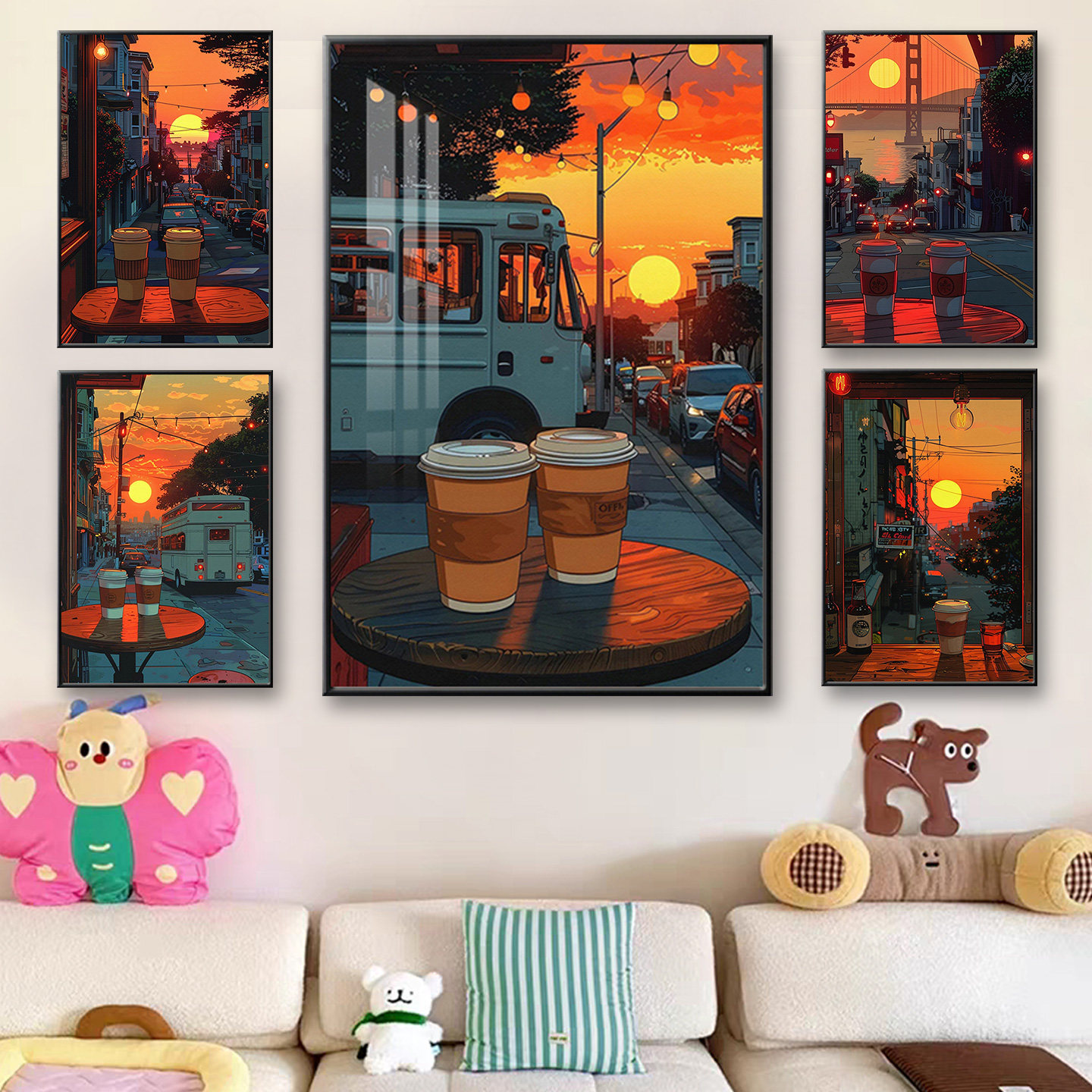 咖啡厅挂画宫崎骏动漫风街景奶茶店装饰画面包烘焙店餐厅摆件壁画
