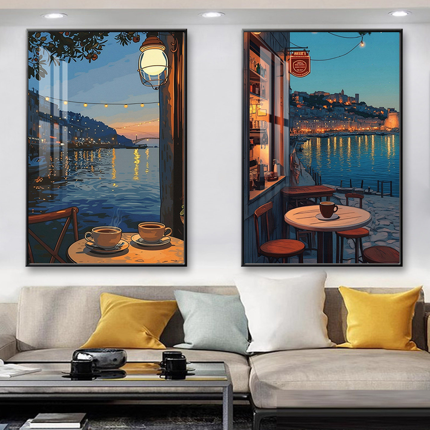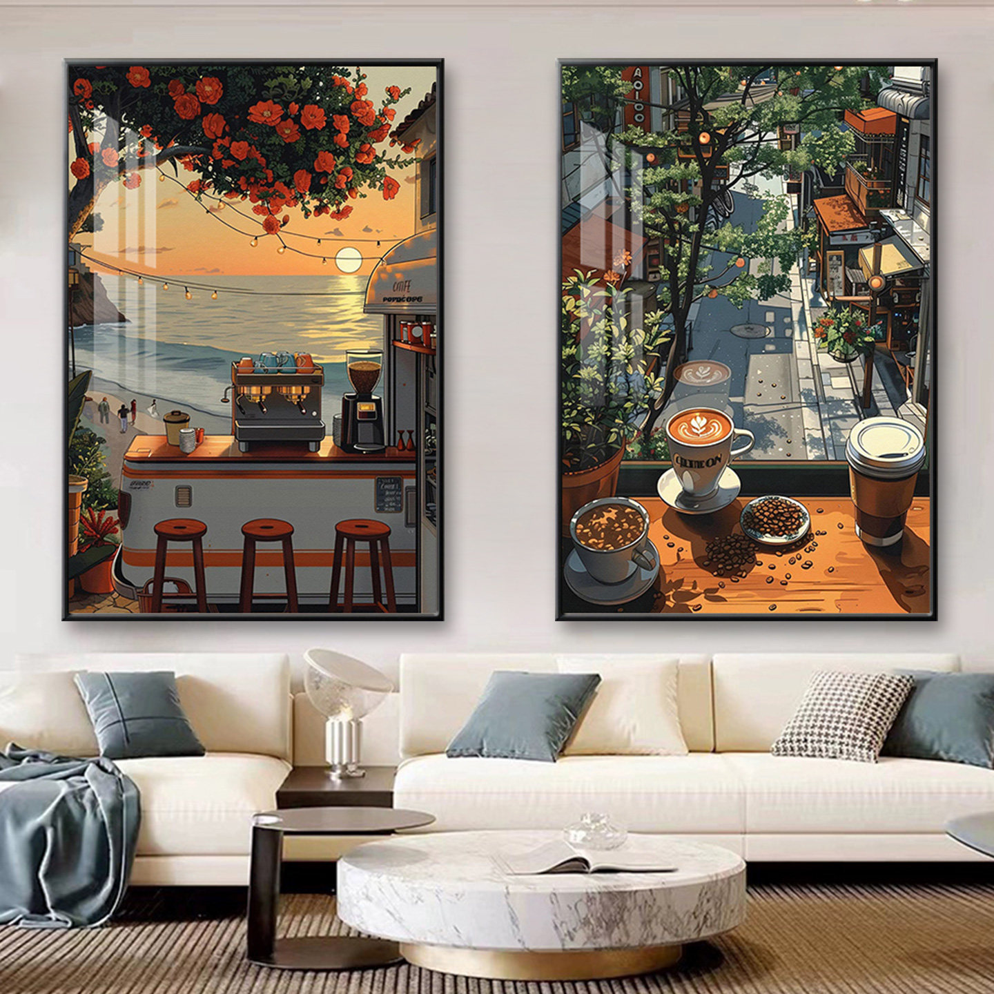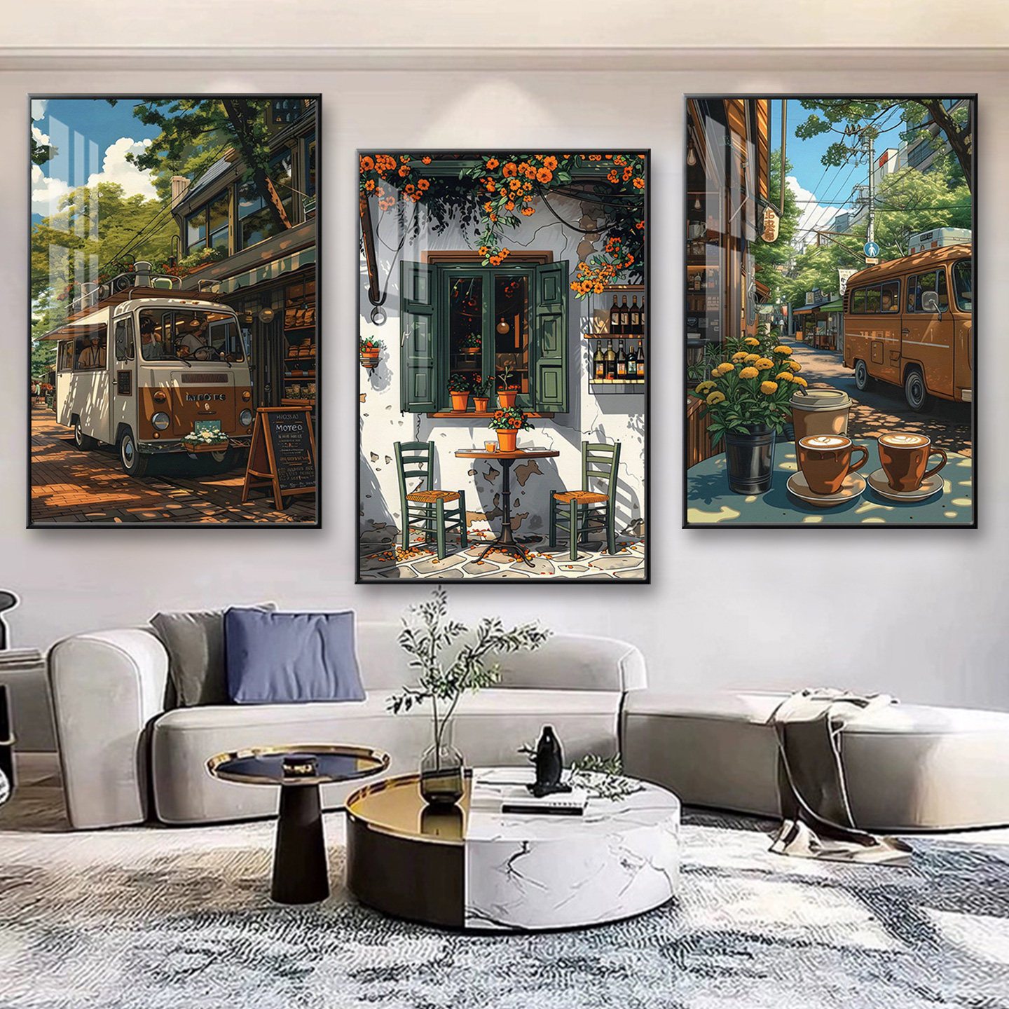 咖啡厅挂画宫崎骏动漫风街景景