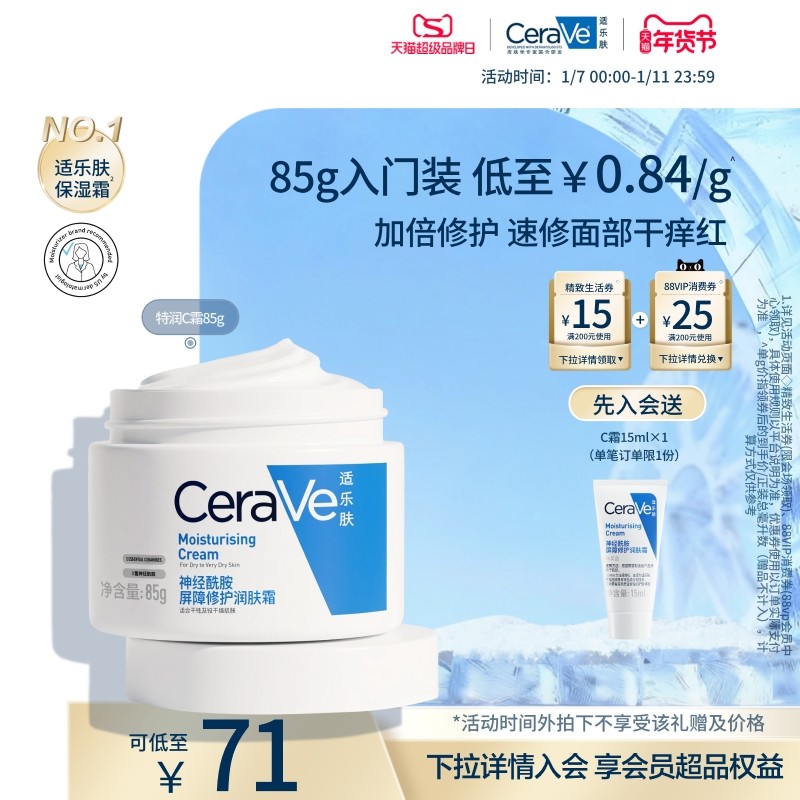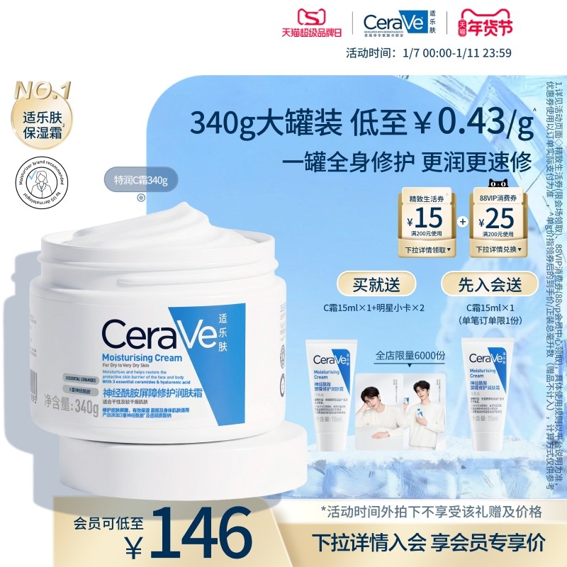 CeraVe适乐肤C霜保湿修护乳液面霜身体男女士正品张凌赫同款