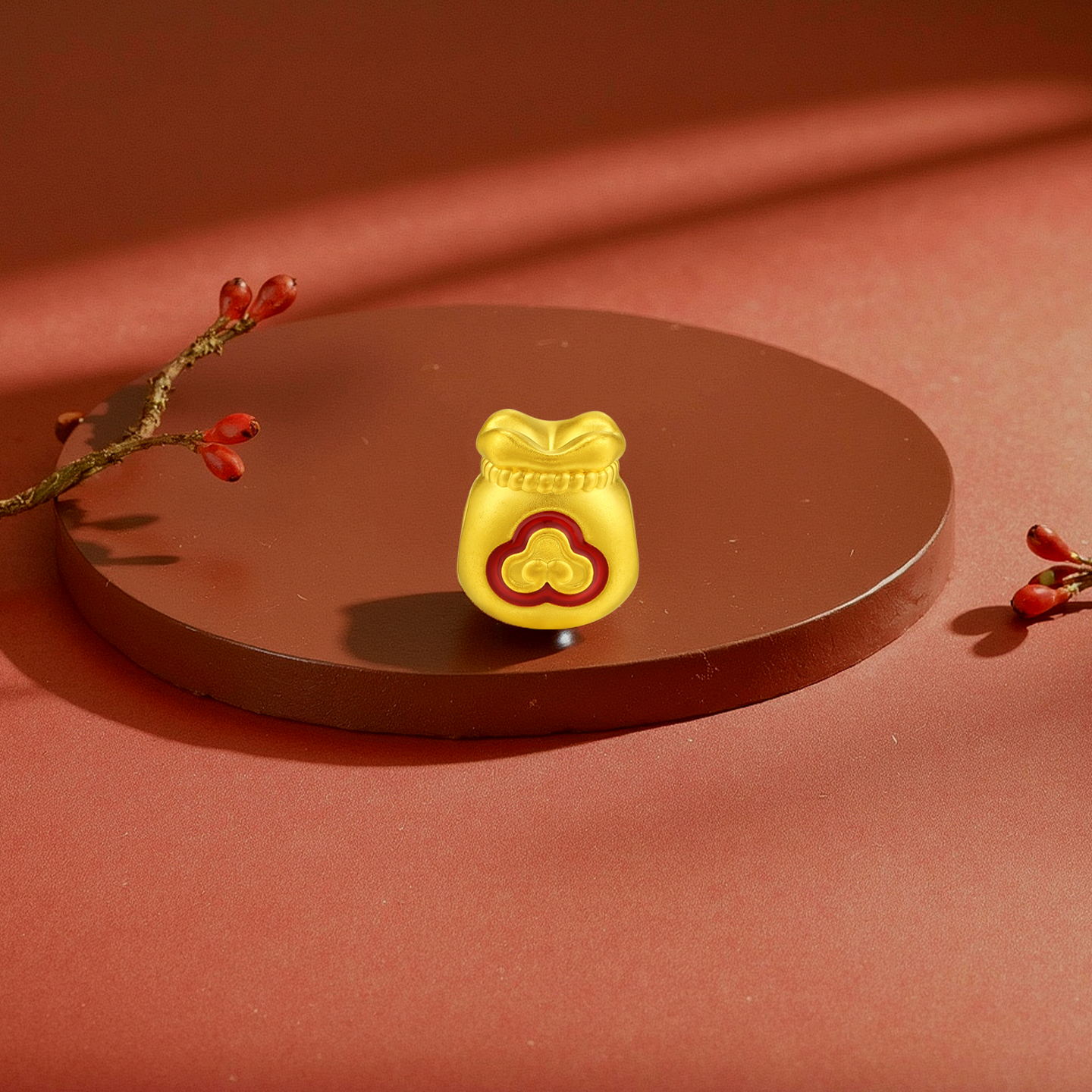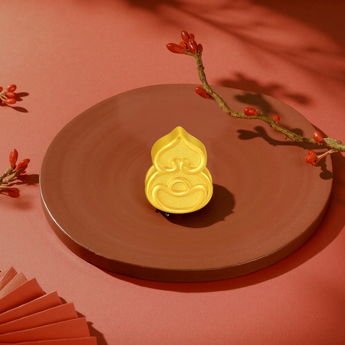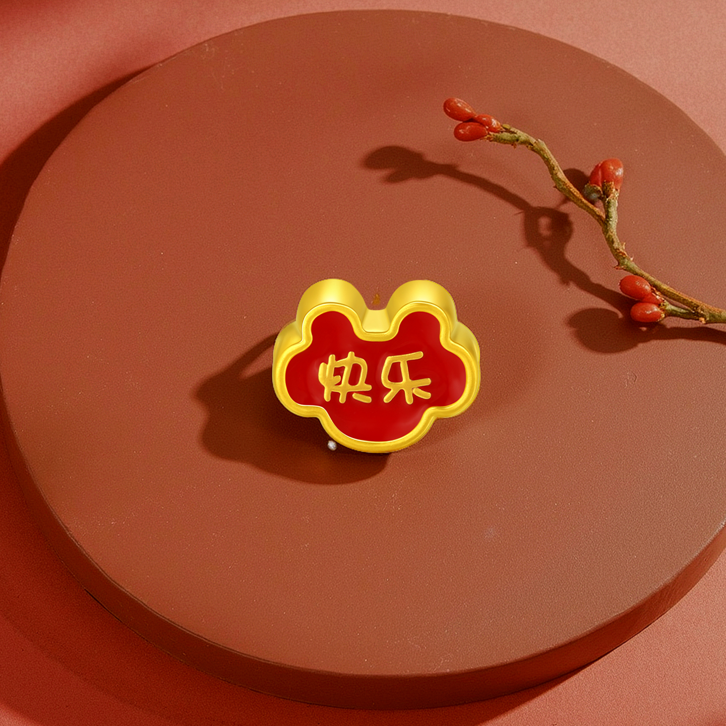 潮宏基国色长命锁黄金吊坠足金挂坠转运串珠5D硬金珐琅福如意 W