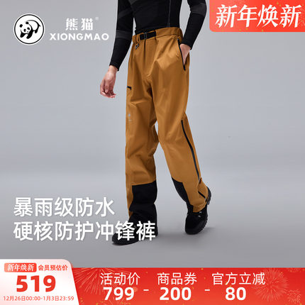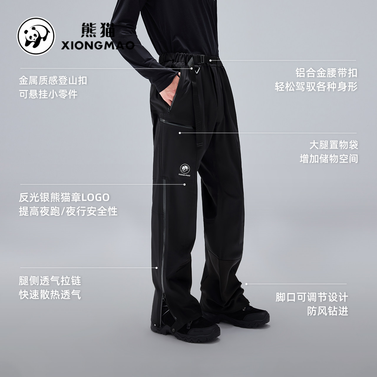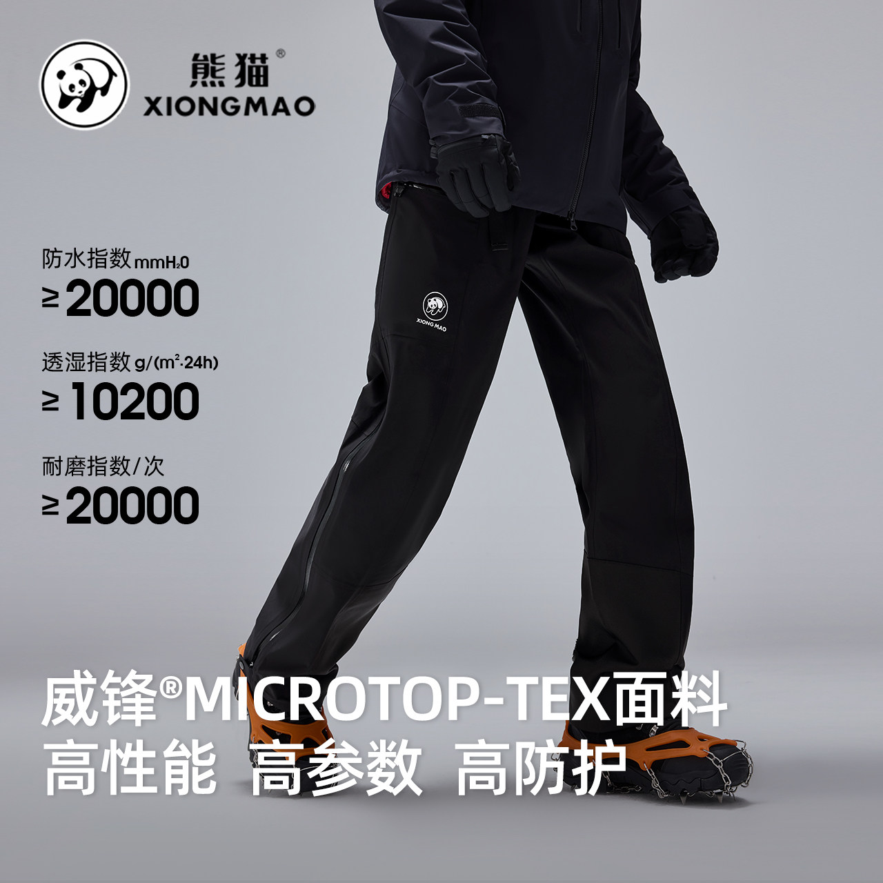 骆驼熊猫户外冲锋裤男款2025新款暴雨级防水防风徒步登山裤幻影黑