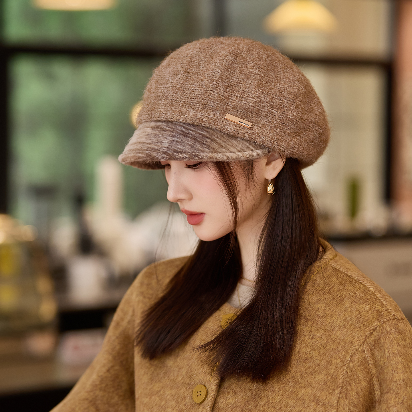 毛呢八角帽女士保暖鸭舌贝雷帽