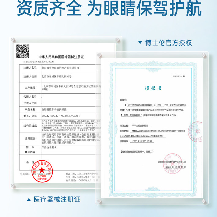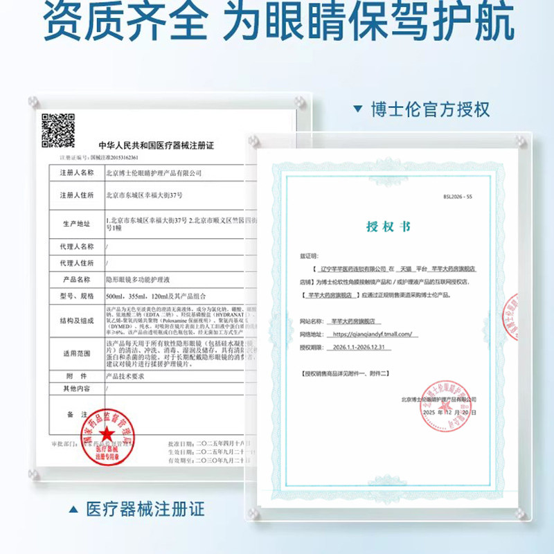 博士伦隐形眼镜护理液润明500+120ml清透大小瓶美瞳官方旗舰正品