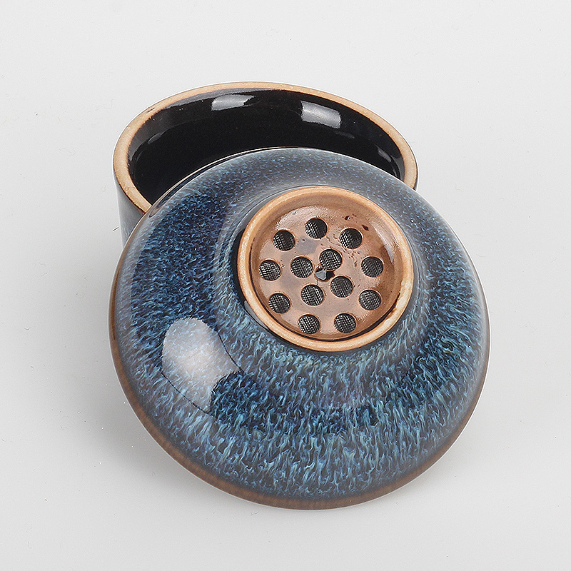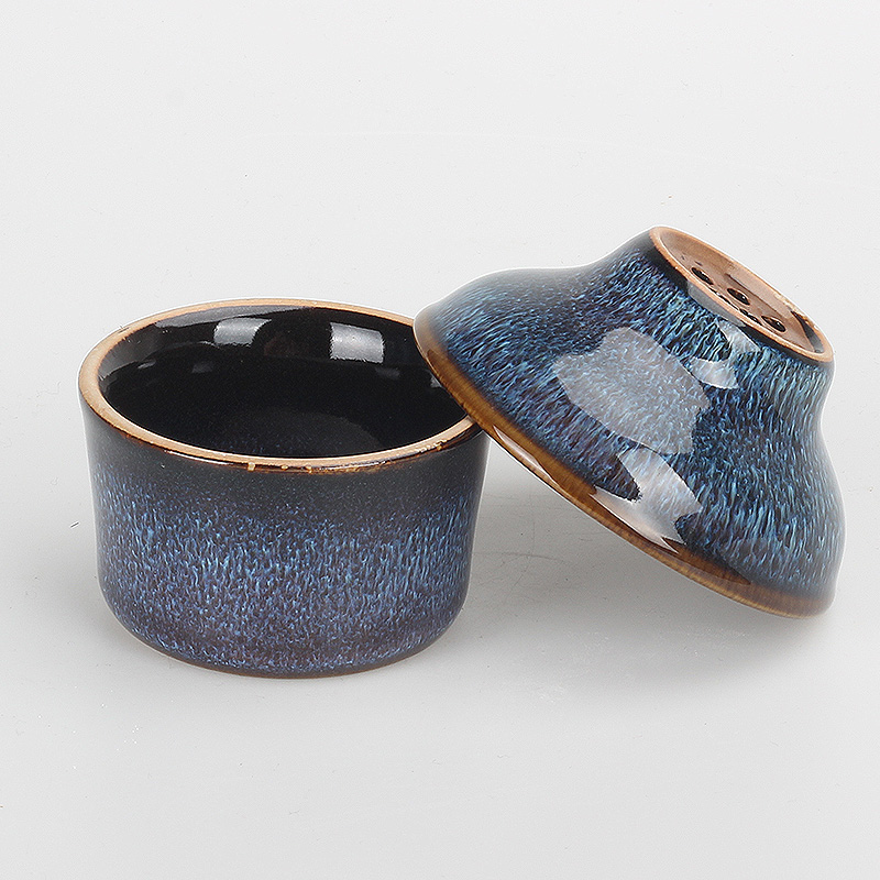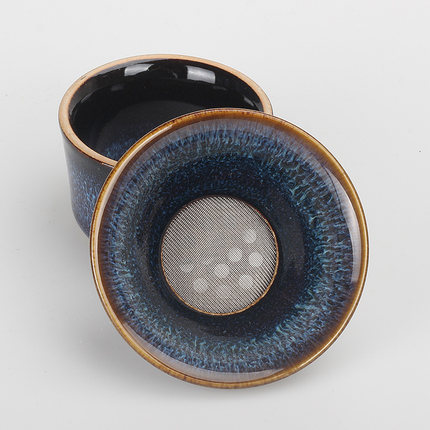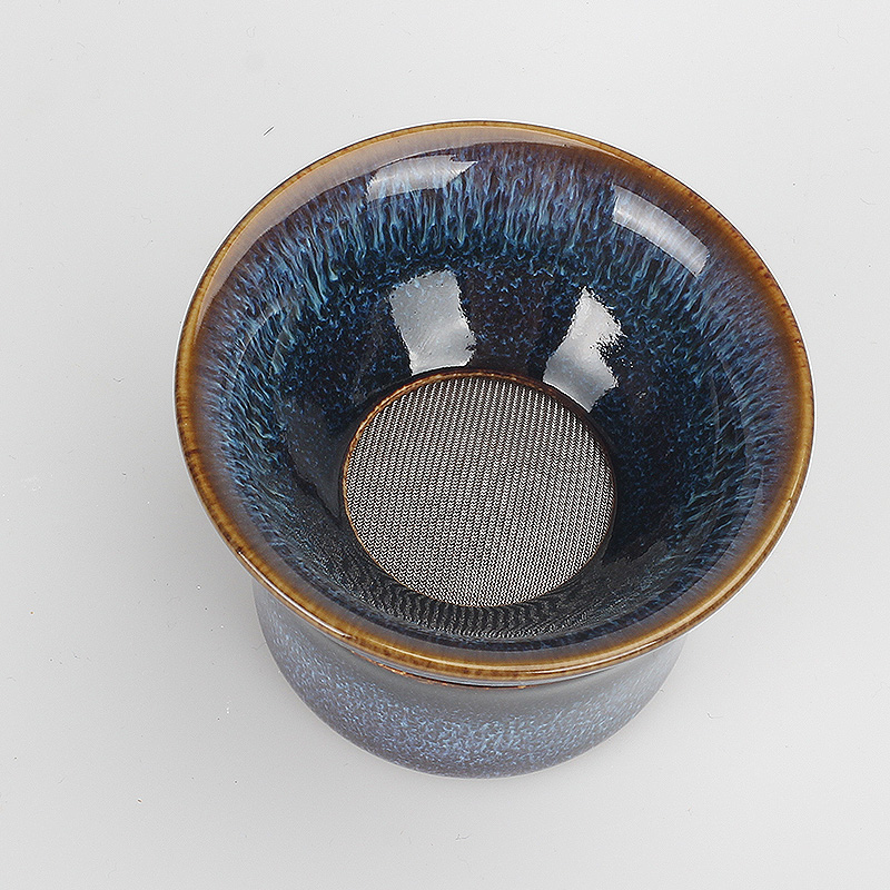 窑变釉蓝盏茶漏功夫茶具茶滤网茶水分离器家用陶瓷茶叶过滤器中式