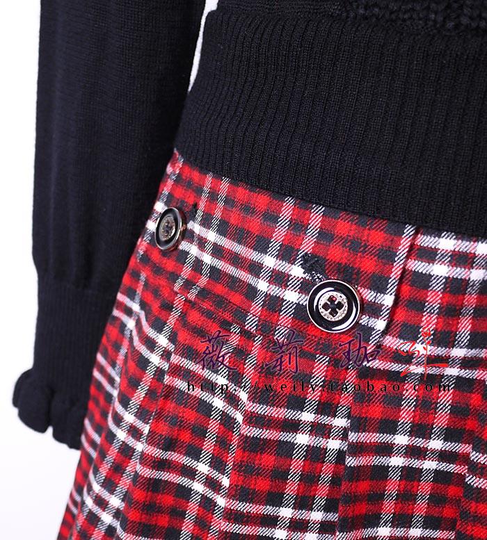 清!薇莉珈姿*尔 春秋新款 格子拼接丝光羊毛连衣裙