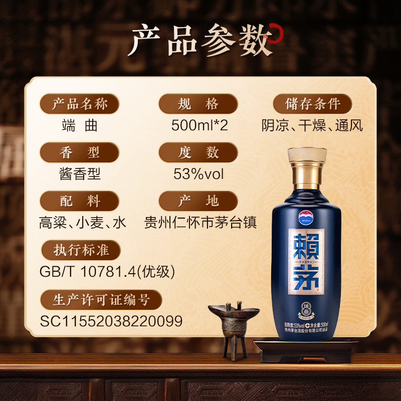贵州酱香赖茅端曲2.0雅韵版酱香型纯粮食高端高粱白酒53度500ml*2