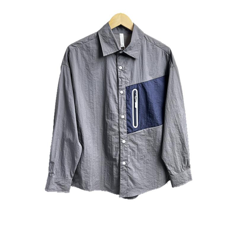户外轻量化!压胶口袋!外贸男装夏季撞色清爽透气休闲防晒衬衫潮