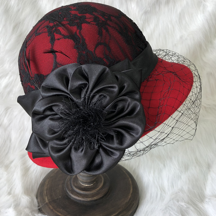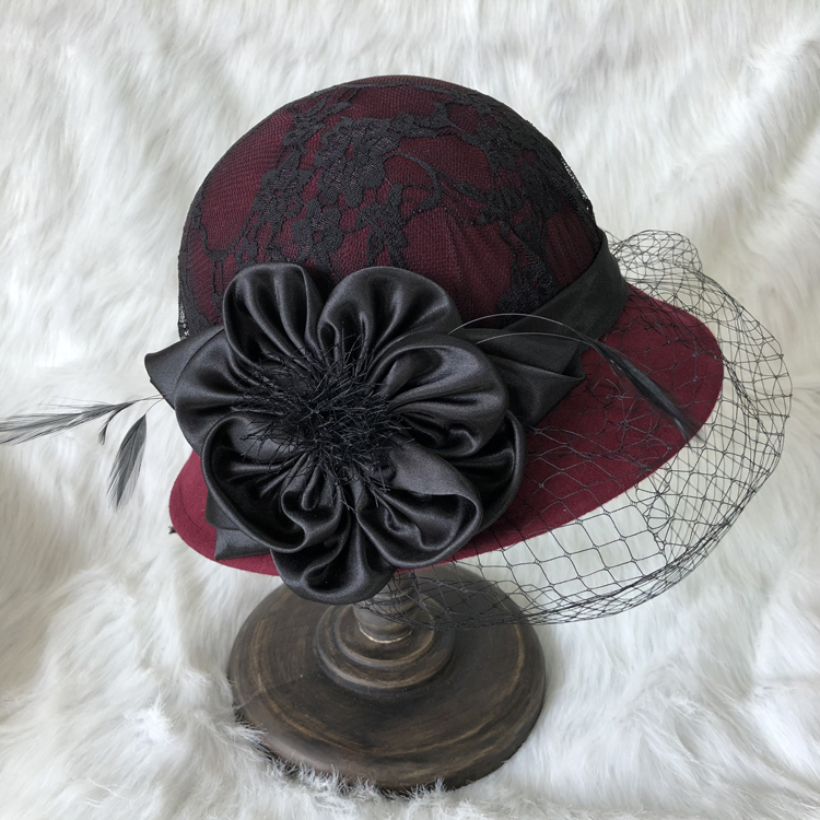 澳洲羊毛呢蕾丝网纱优雅圆顶礼帽