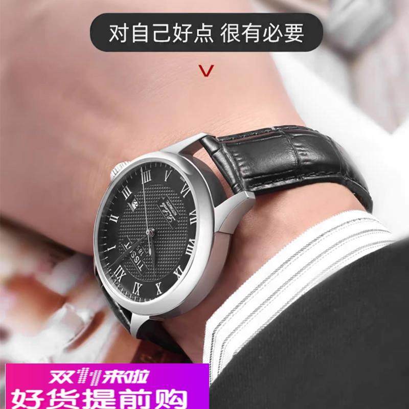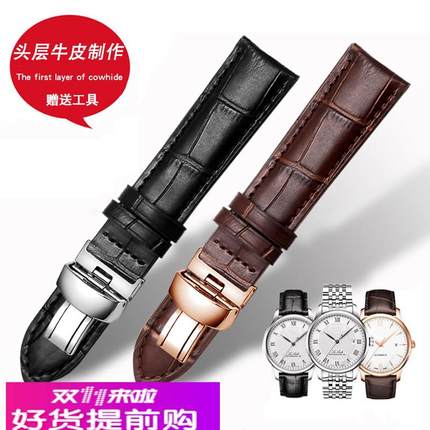 适用原厂天梭1853力洛克真皮表带男T41海星俊雅杜鲁尔库图系列替