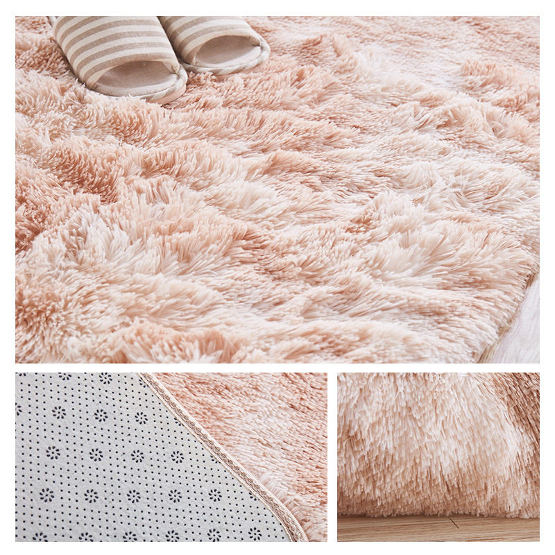 长方形丝毛扎染地垫渐变长毛地毯北欧风卧室阳台飘窗地毯地垫