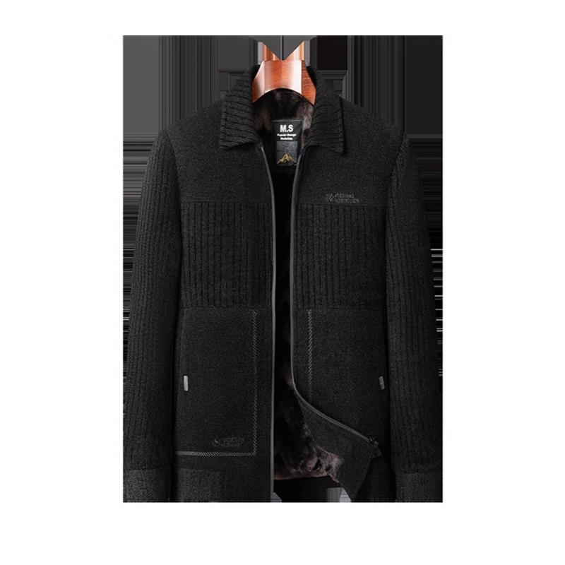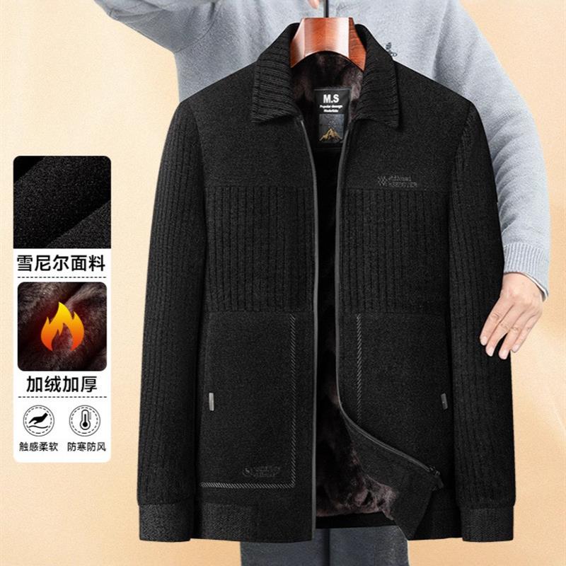 春秋新款爸爸外套中老年夹克男装中年男士宽松翻领雪尼尔休闲夹