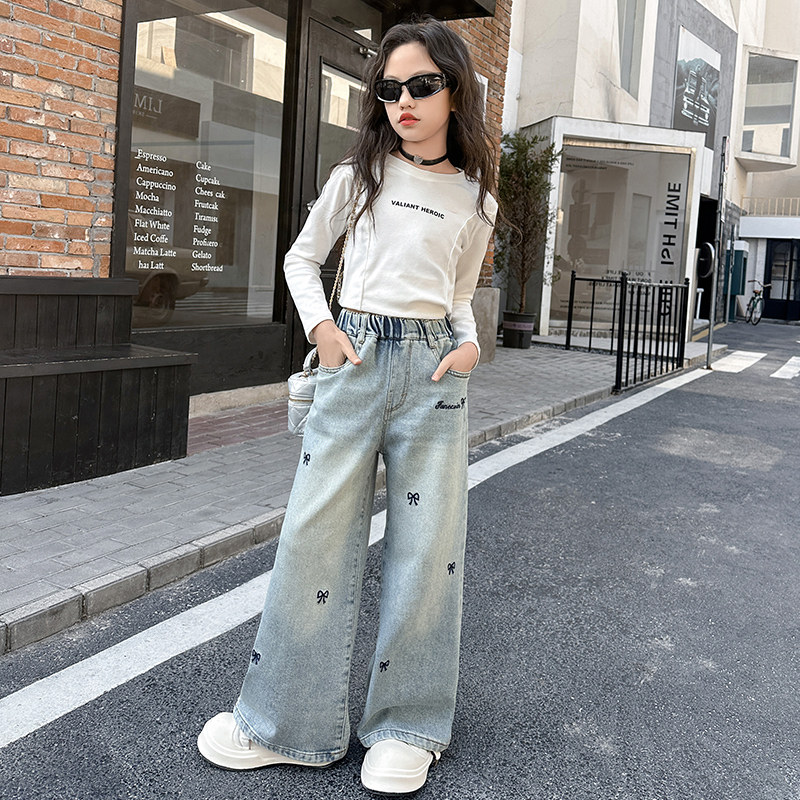 女童牛仔裤春秋季2025新款女孩薄款直筒阔腿裤中大儿童休闲长裤子
