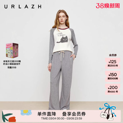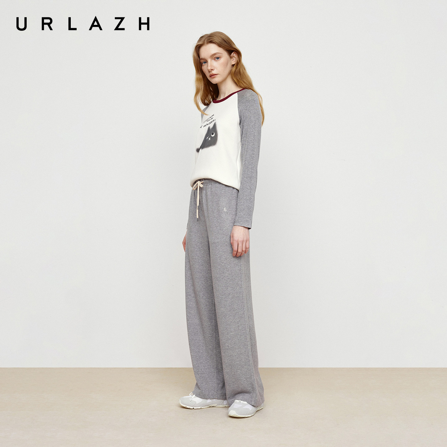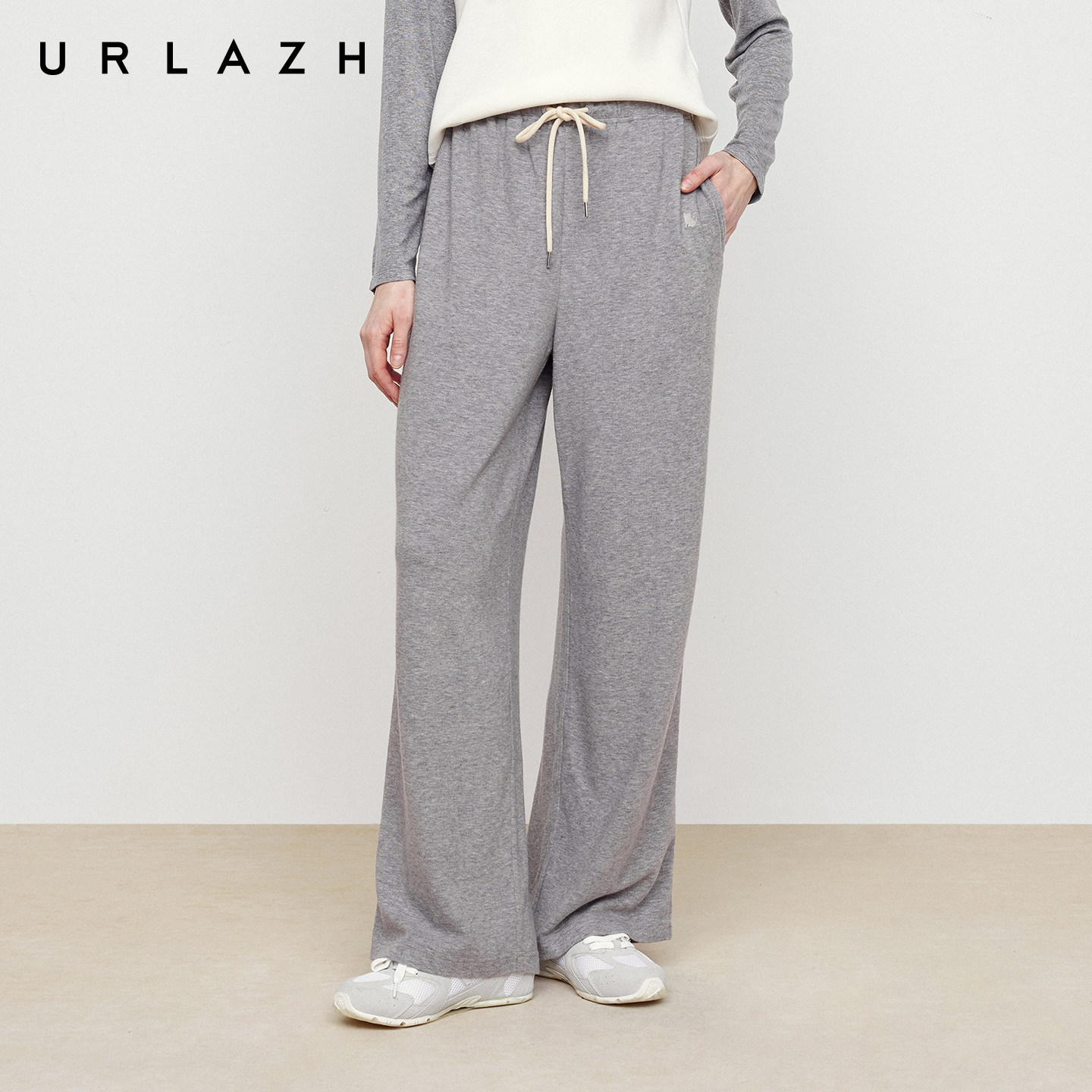 商场同款URLAZH有兰2025秋季新款简约灰U等等绣花高腰直筒休闲裤