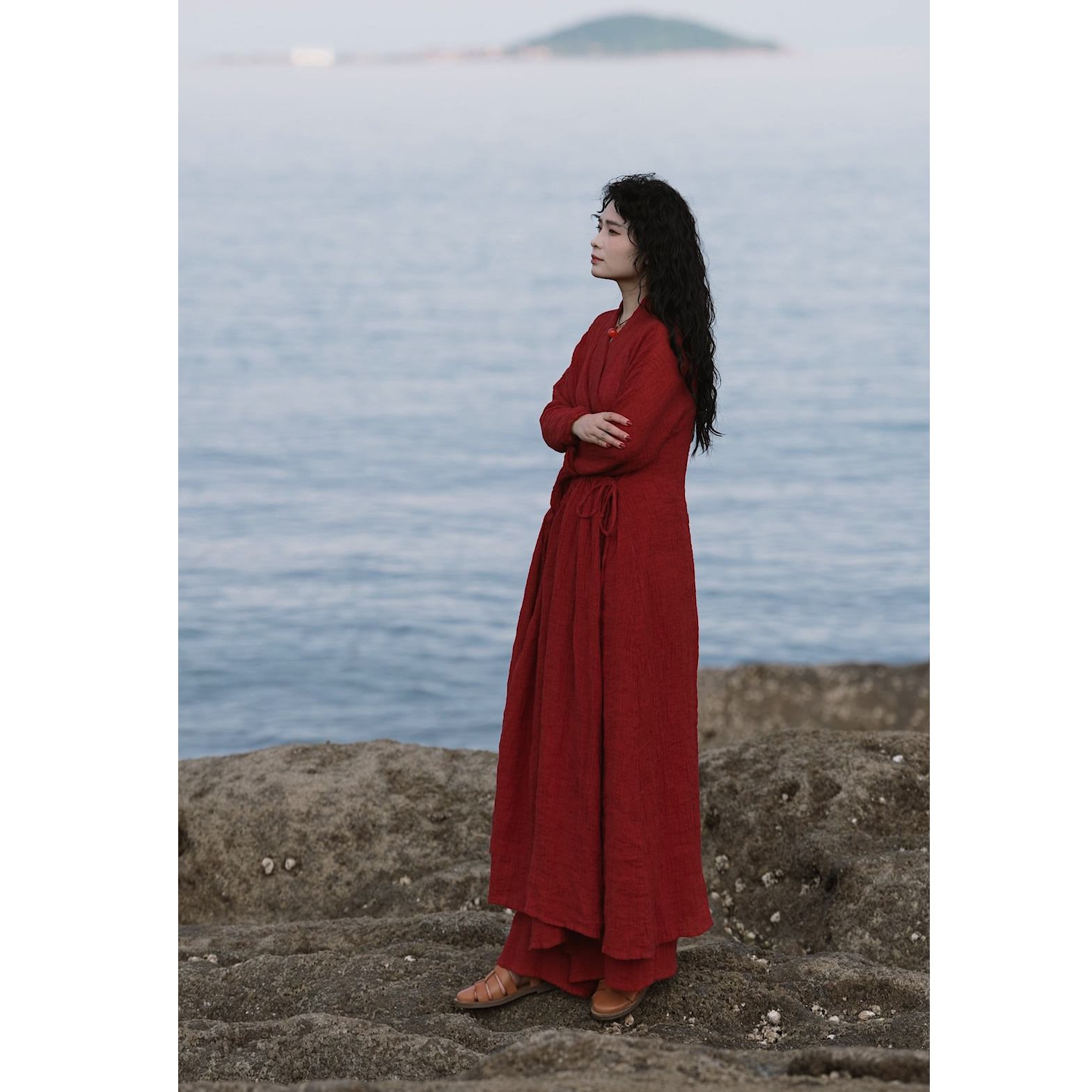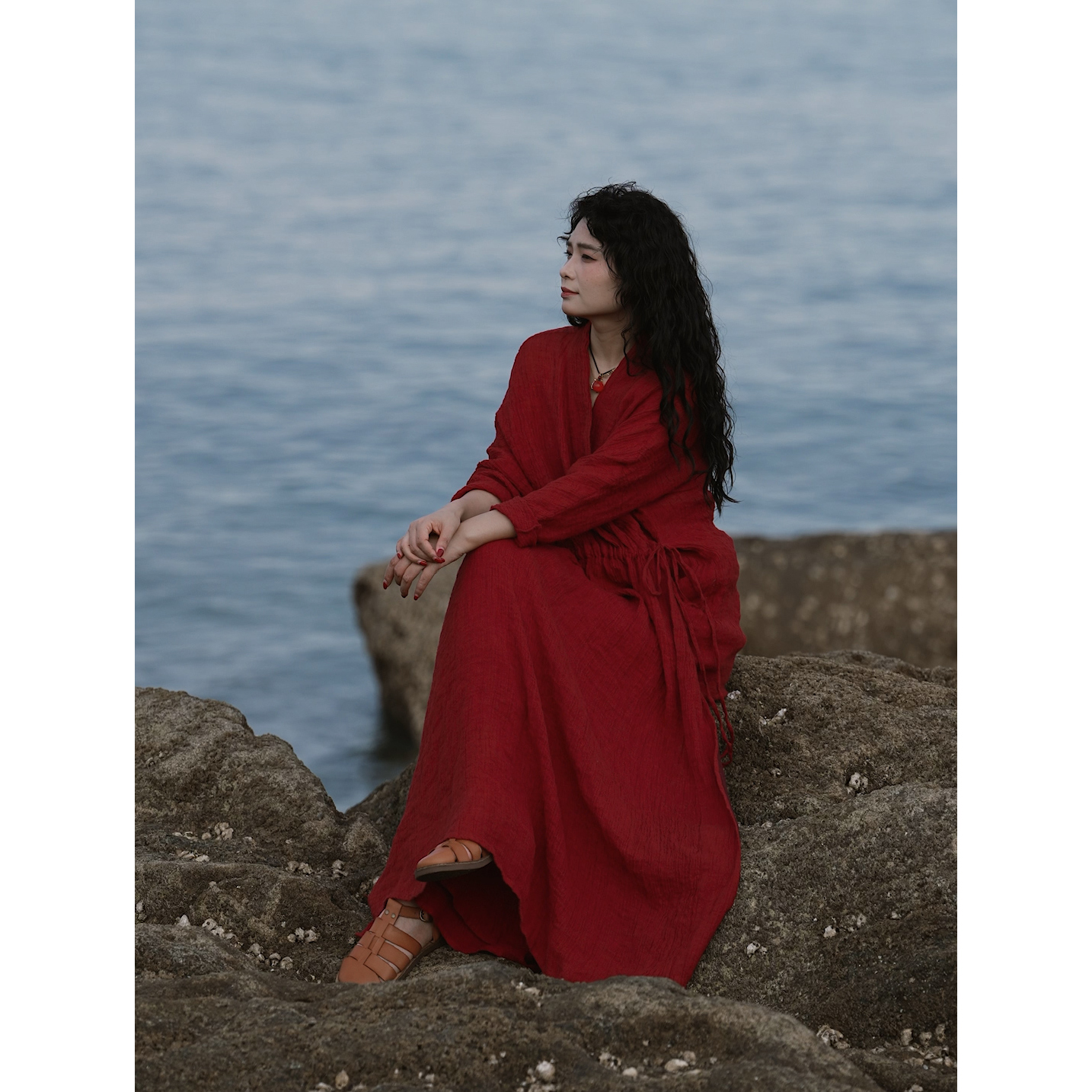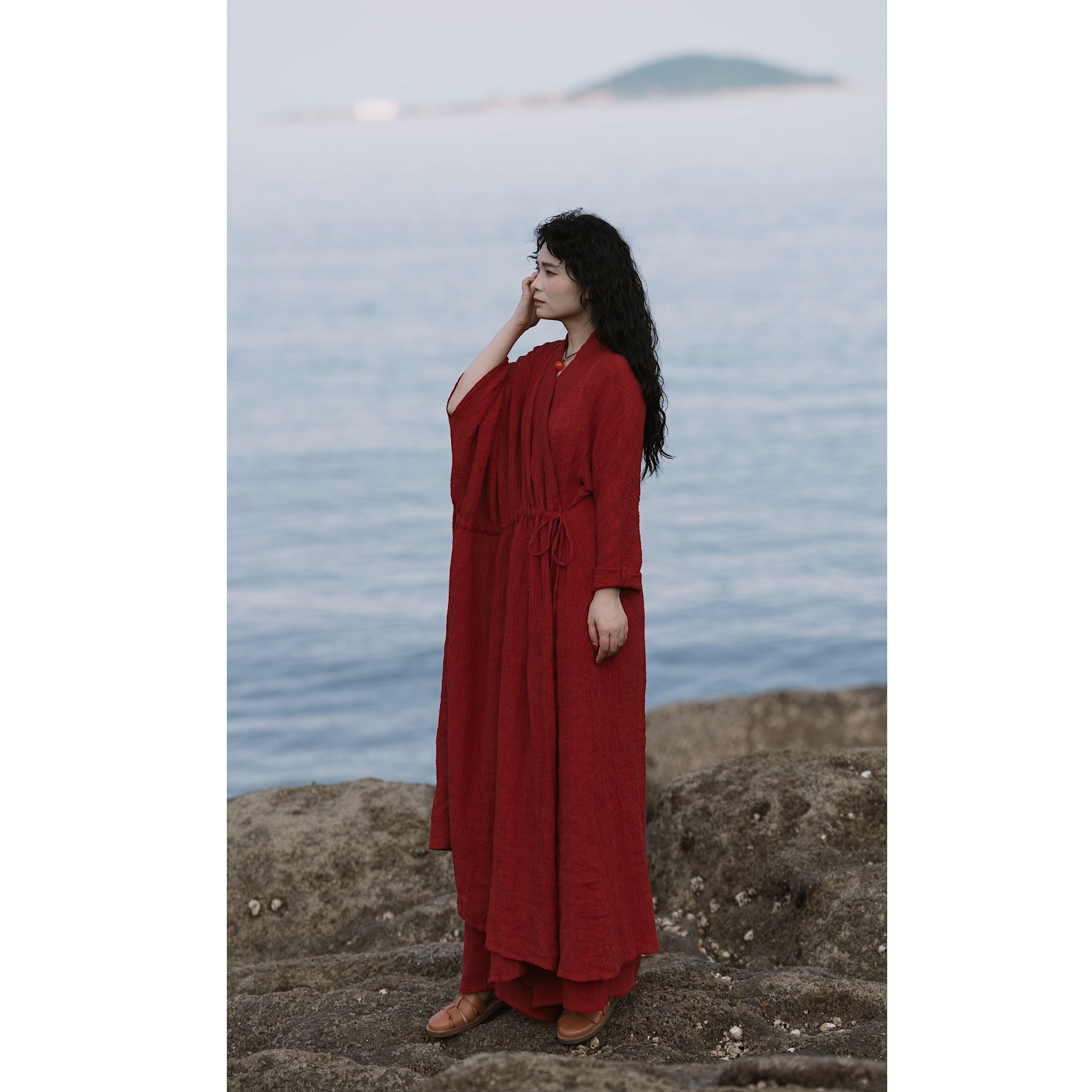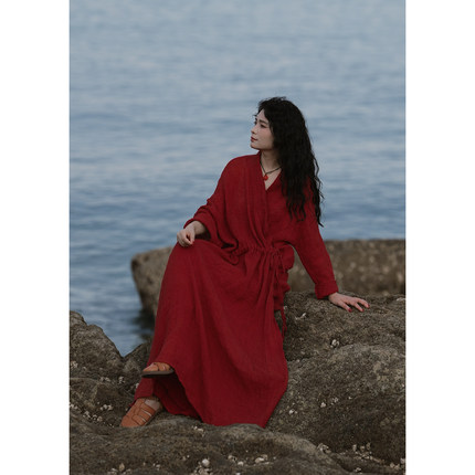 YIMIAN 复古港风亚麻“海棠标韵”度假风松弛感显瘦质感连衣裙
