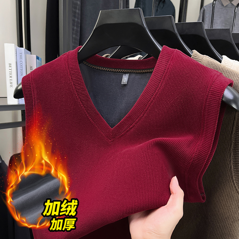 秋冬马甲中老年人加绒加厚坎肩爸爸加肥大码套头男一体绒保暖背心