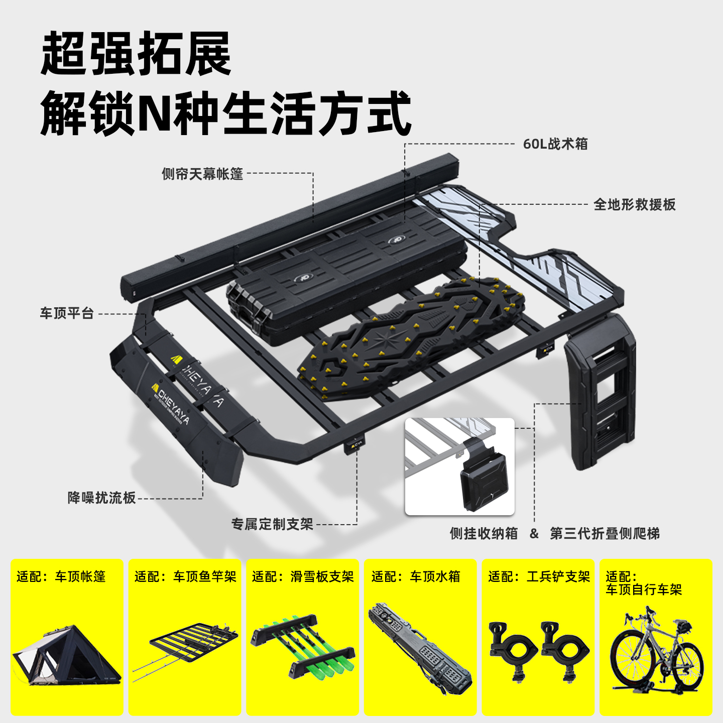 CHEYAYA北汽212车顶平台T01行李架横杆行李框侧爬梯书包机甲帐篷