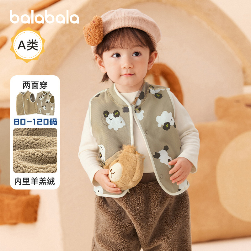 巴拉巴拉婴儿马甲儿童加绒保暖背心男童女童马夹宝宝外套两面穿潮