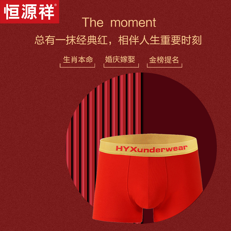 恒源祥本命年内裤男士纯棉大红内裤节庆鸿运结婚平角裤四角裤套装