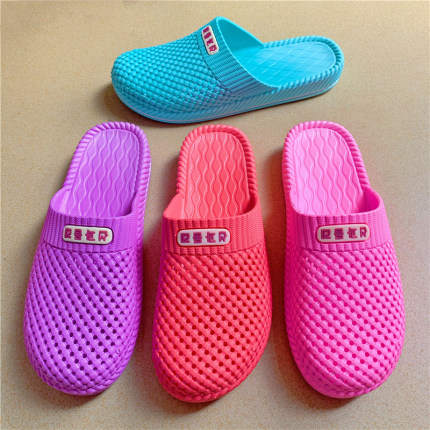 善和602夏季新款外穿家居韩版软底透气包头洞洞拖鞋女 吴川特产