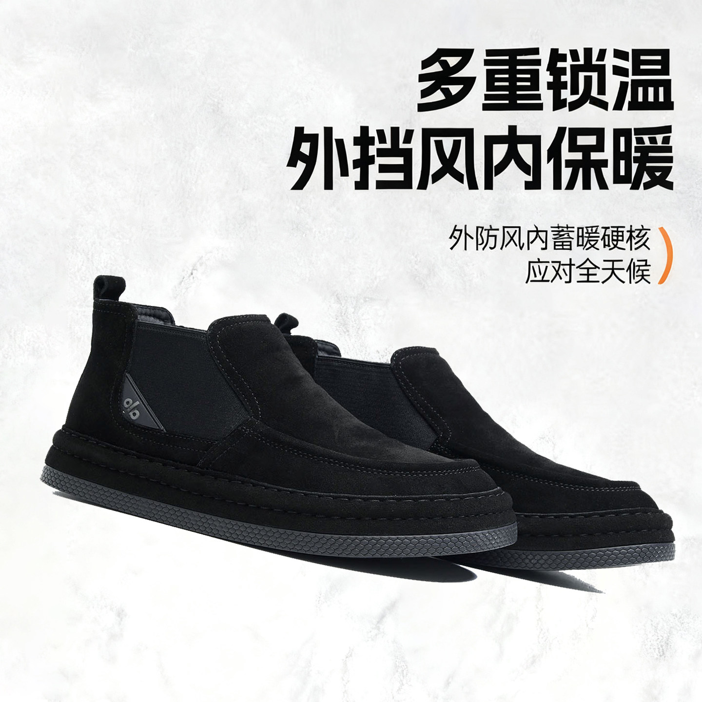反绒皮男鞋冬季新款加绒保暖短筒磨砂皮英伦韩版一脚蹬休闲二棉鞋