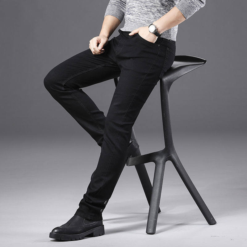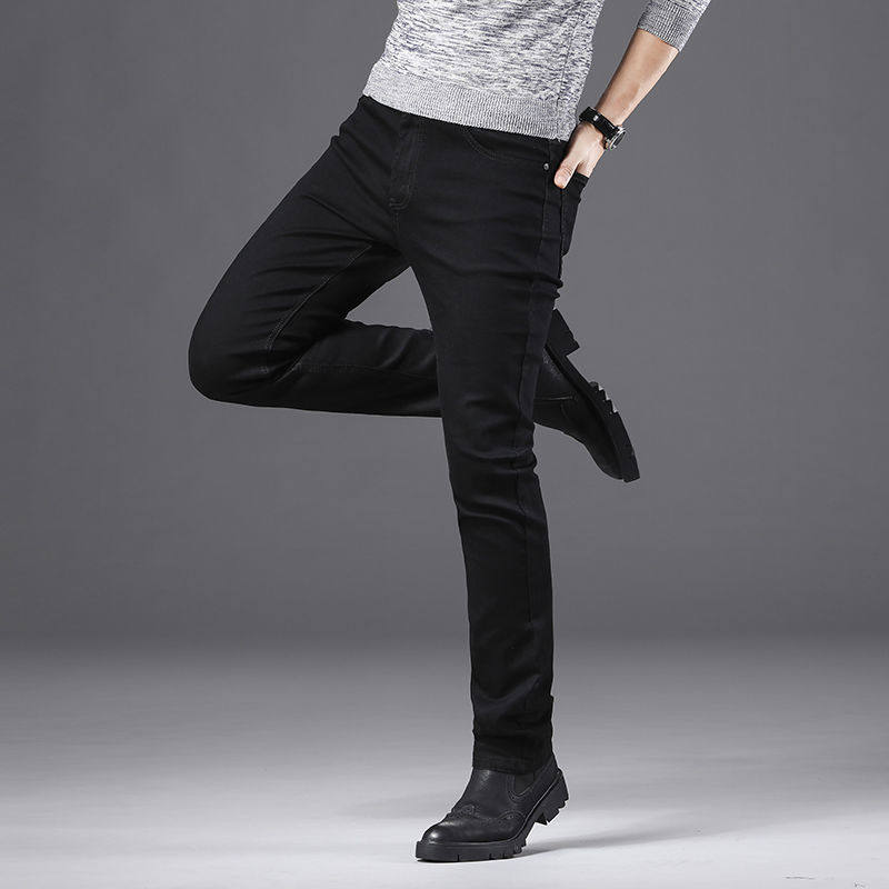 纯黑色长裤子中青年男士牛仔裤百搭男裤直筒宽松商务休闲夏季薄款