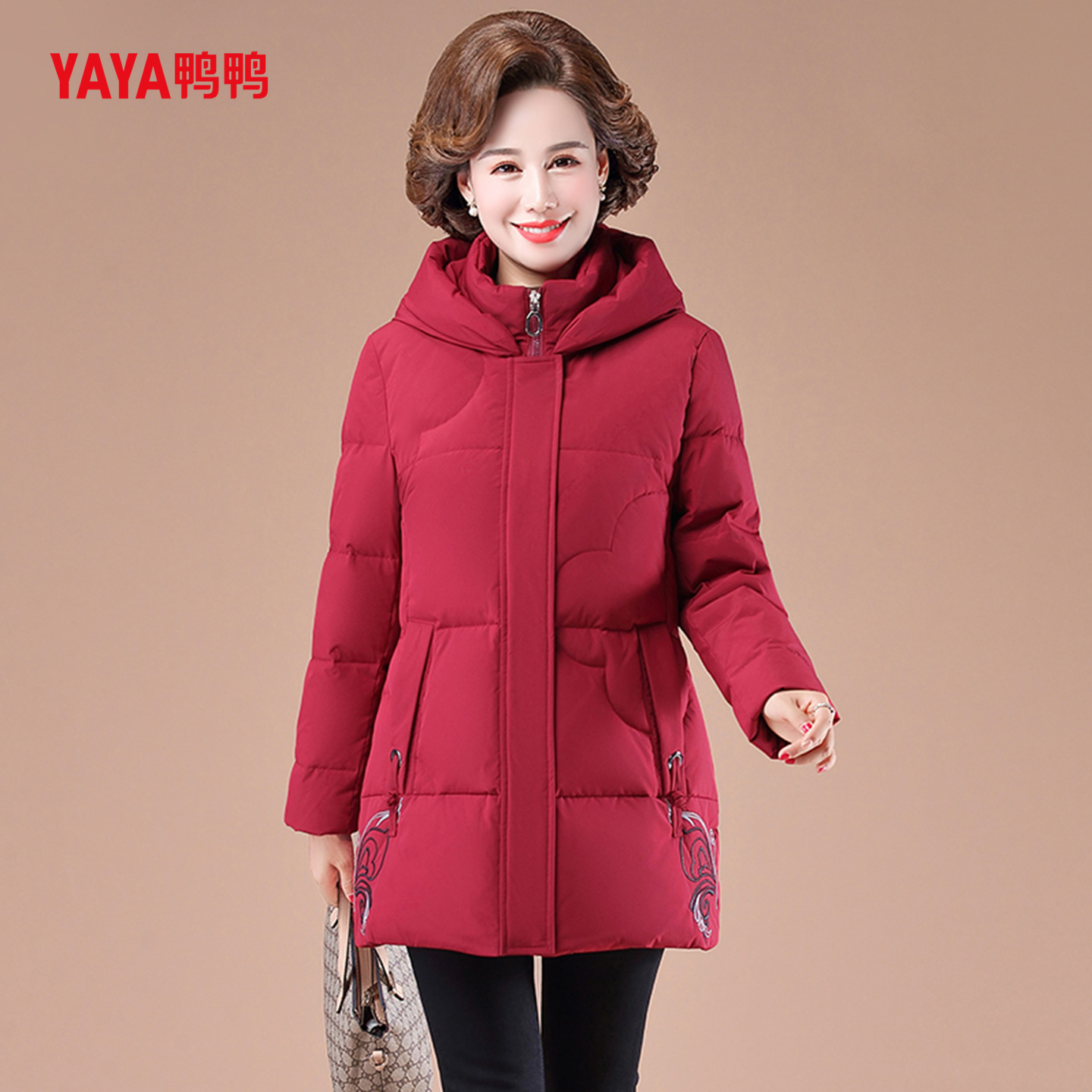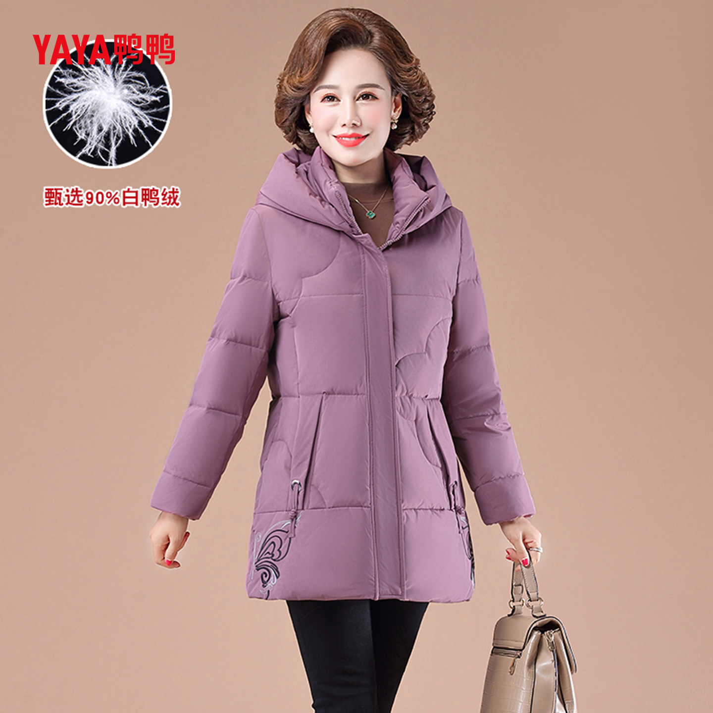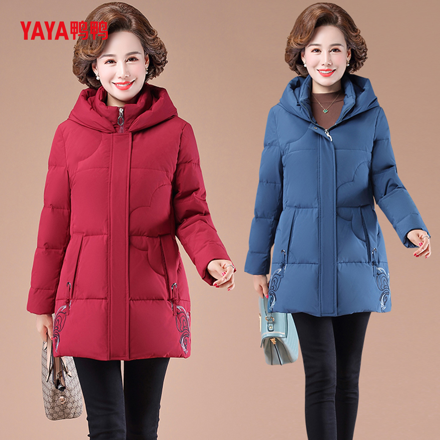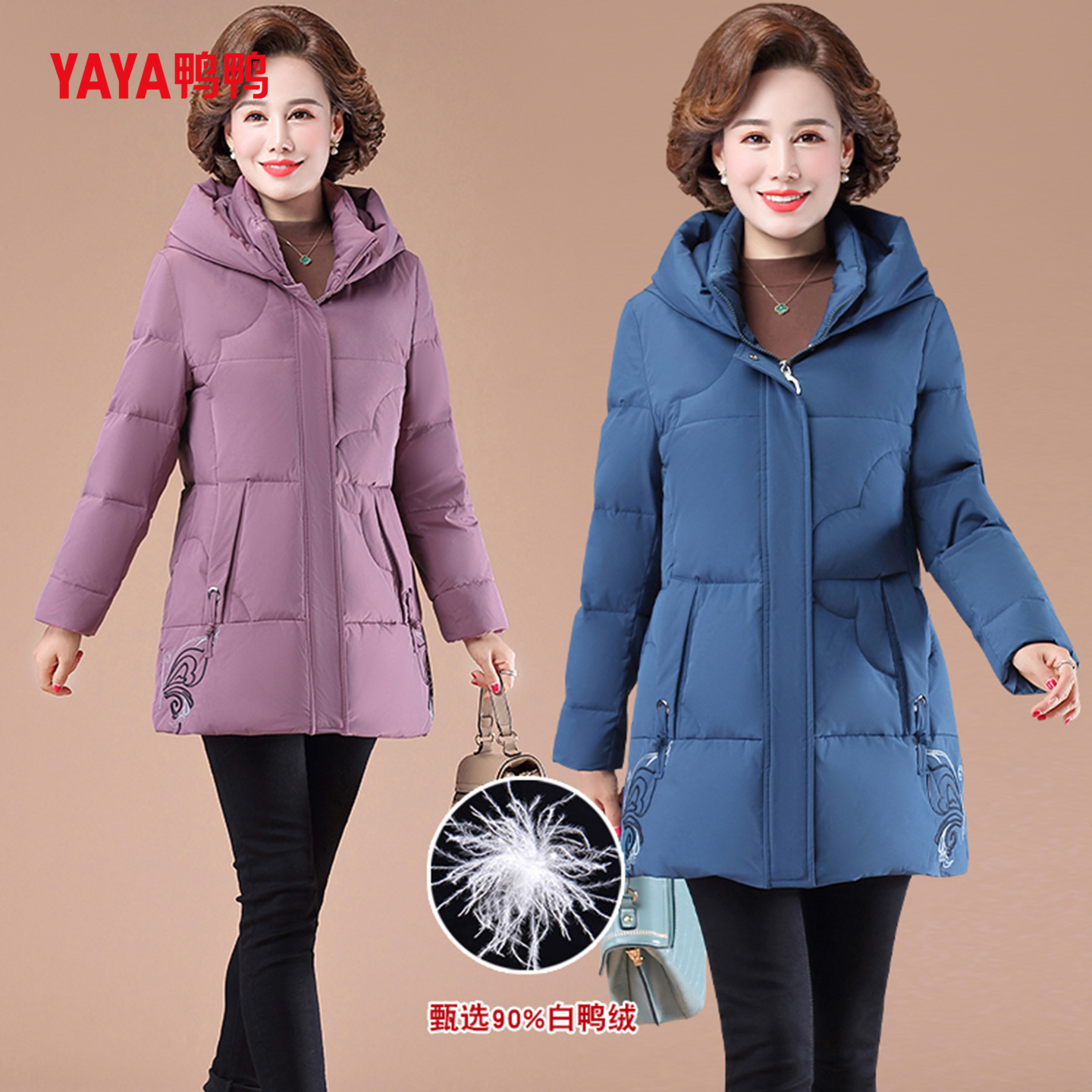 YAYA鸭鸭羽绒服冬季2025新款中年女款中长款连帽洋气宽松加厚外套