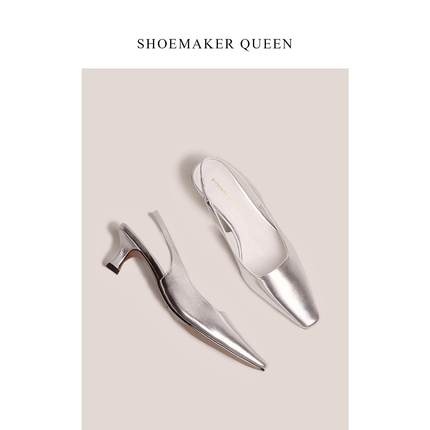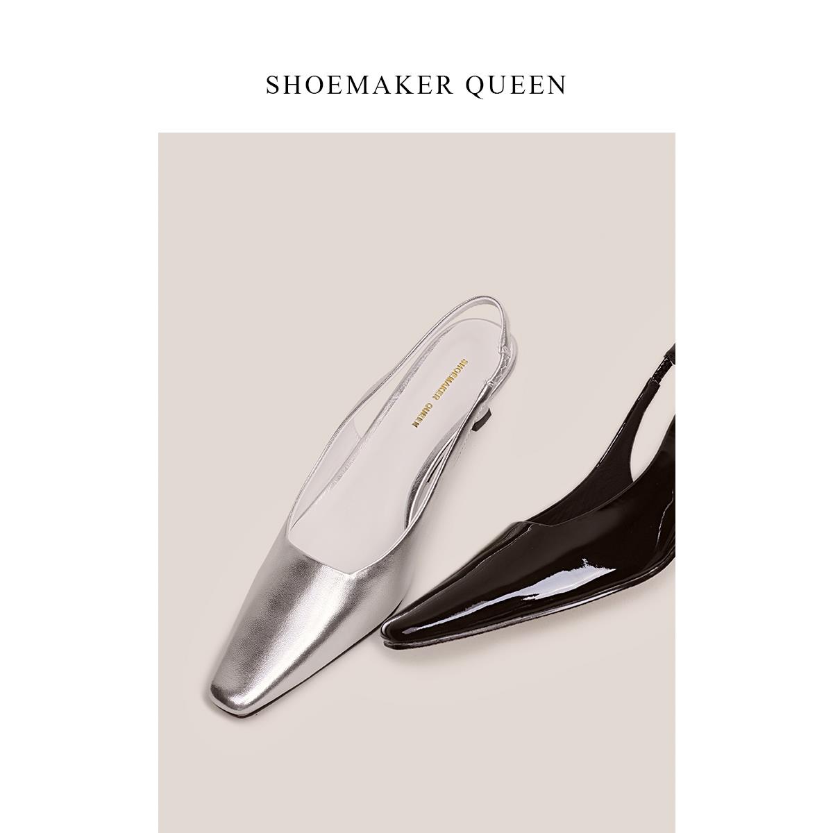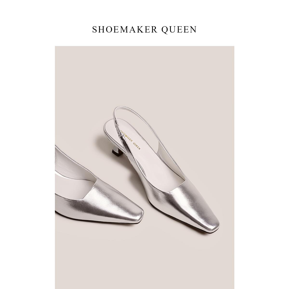 【鞋匠女王×重磅艏发】真皮小方头包头凉鞋女气质中跟法式高跟鞋