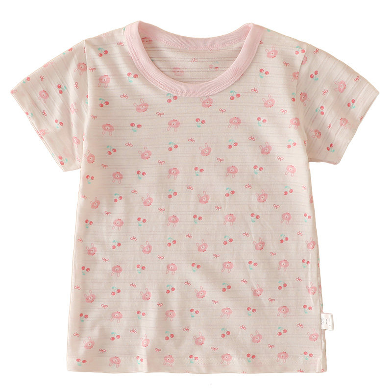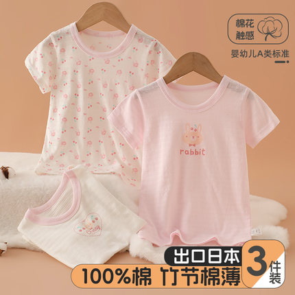 竹节棉女宝宝纯棉T恤夏季薄款女童短袖上衣服透气日系儿童夏装3件