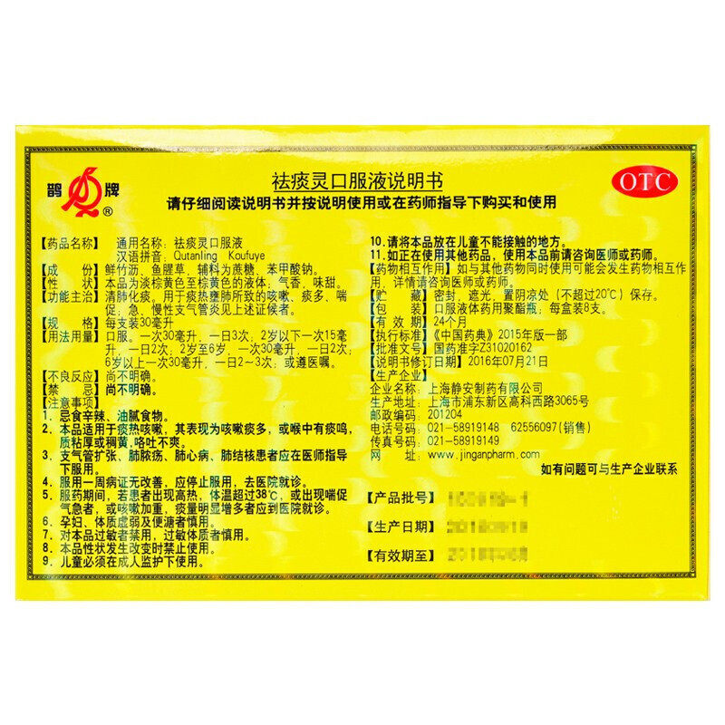 【鹊牌】祛痰灵口服液30ml*8支/盒