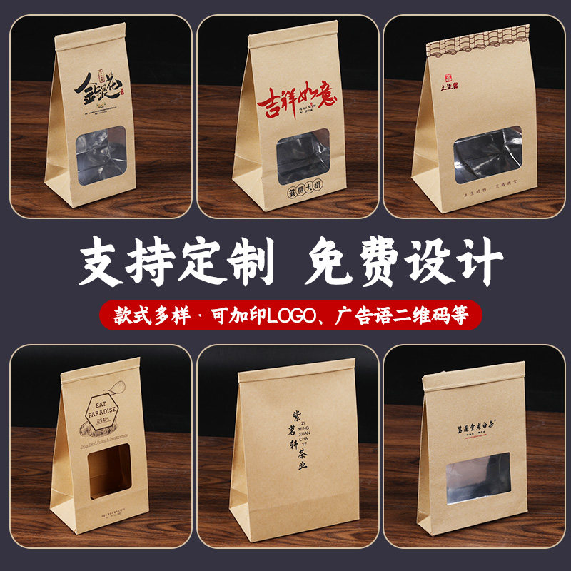 开窗牛皮纸茶叶包装袋散茶密封铝箔袋铁丝自封袋茶叶样品分装纸袋