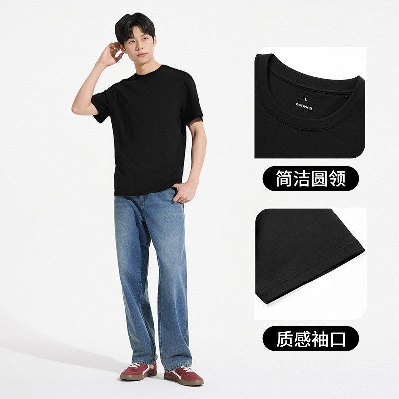 热风男士短袖T恤上衣2026年春季新款基础款百搭黑色棉T白色短袖T