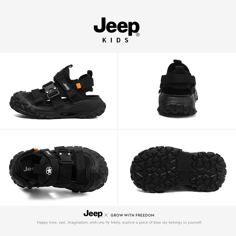 JEEP儿童包头运动凉鞋2025夏季新款透气防滑网面男童女童休闲鞋子