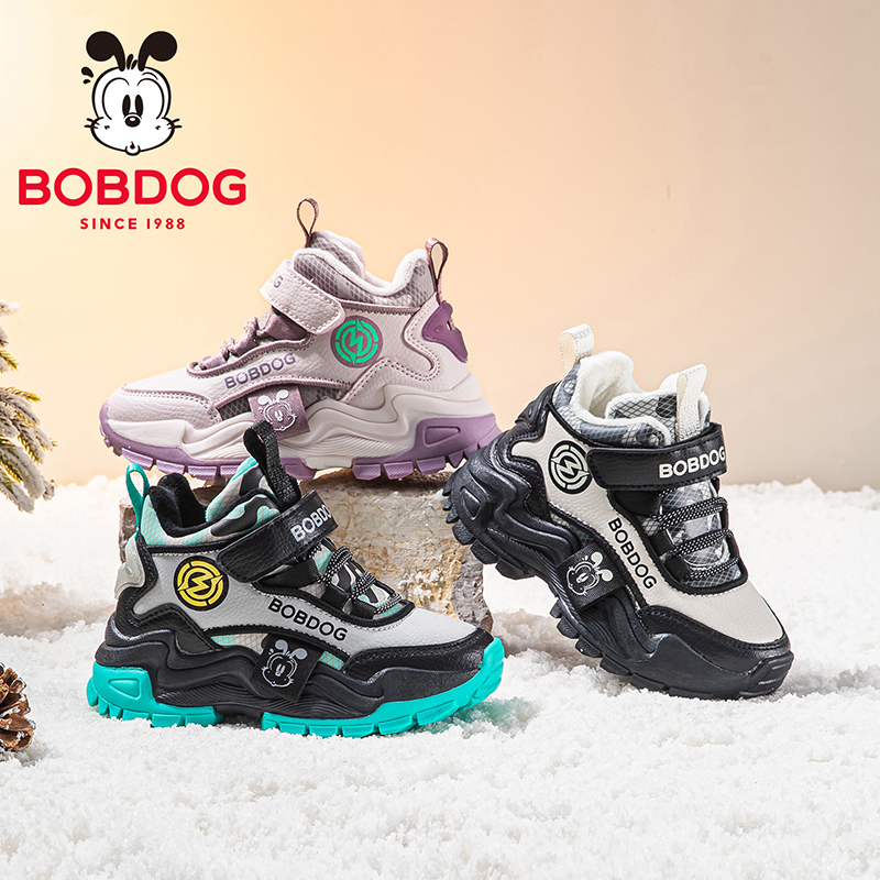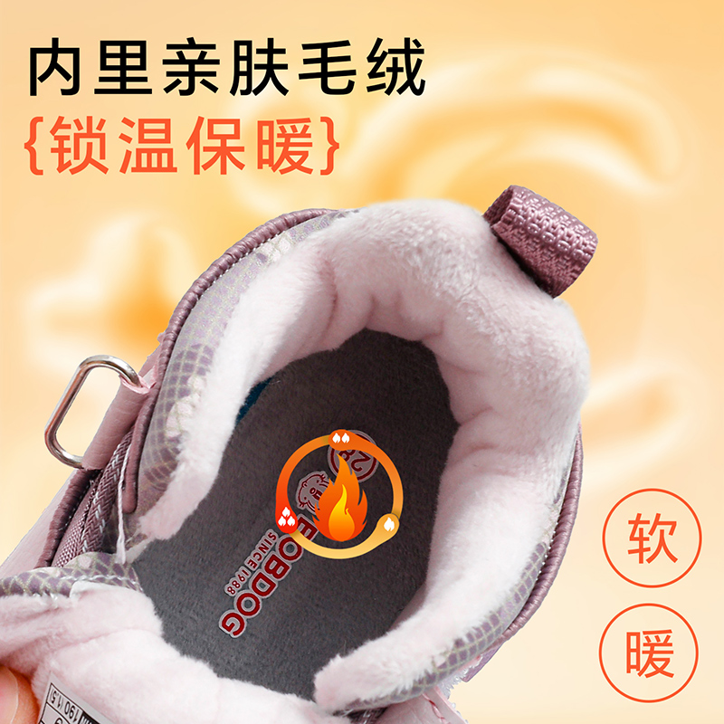 巴布豆童鞋官方旗舰店正品女童加绒运动鞋加厚女大童男儿童二棉鞋