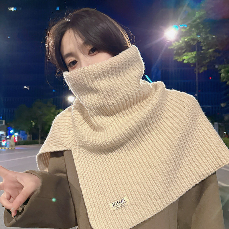 时尚开叉高领披肩女秋冬季韩版百搭针织围巾防寒保暖套头毛线围脖