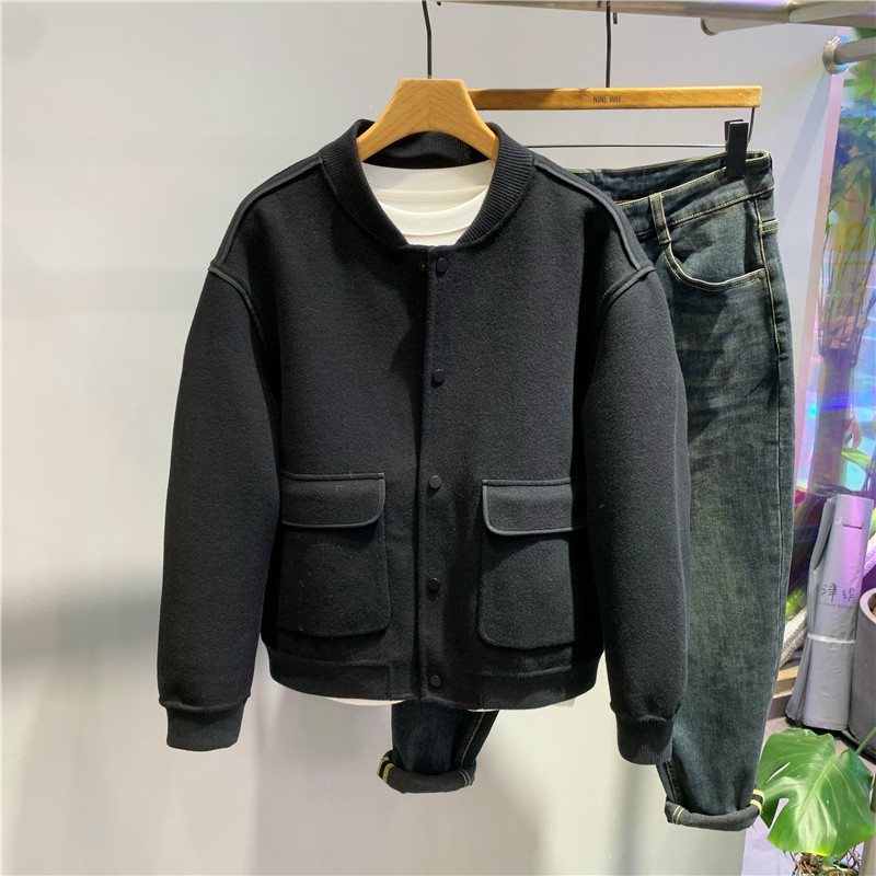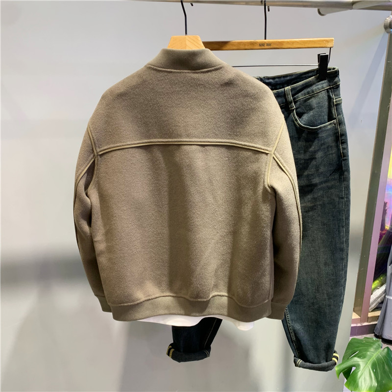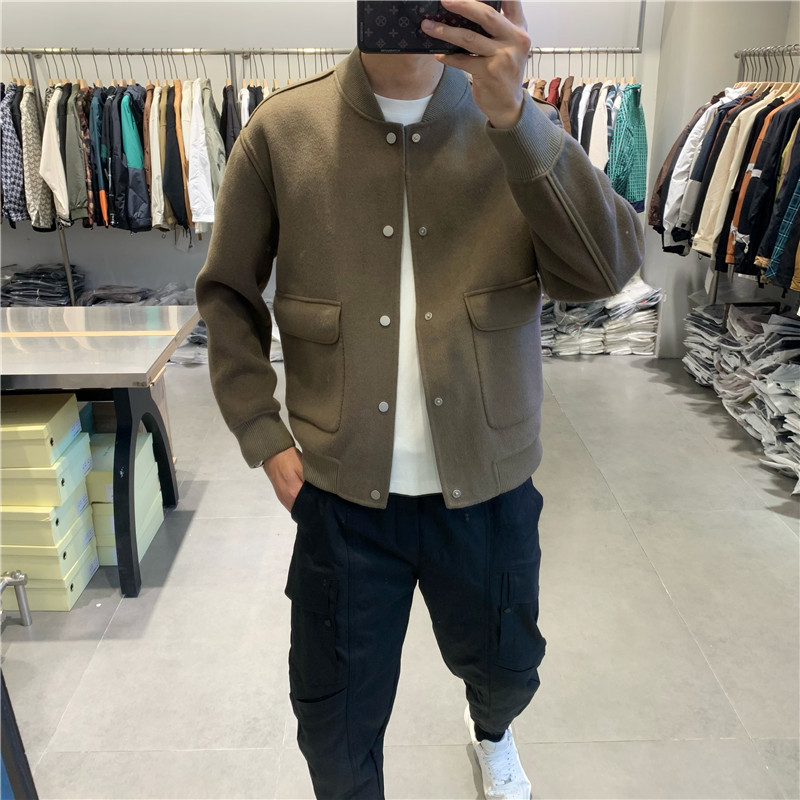 一公元棒球服双面毛呢短款外套潮流时尚高品质青年羊毛大衣夹克潮