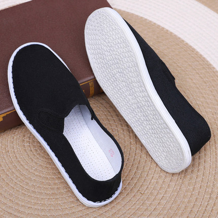 老北京布鞋男款千层底布鞋透气吸汗一脚蹬工作鞋休闲鞋开车黑布鞋
