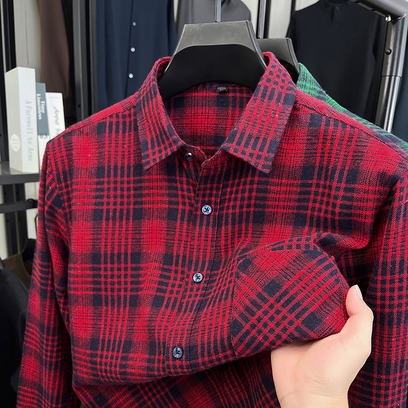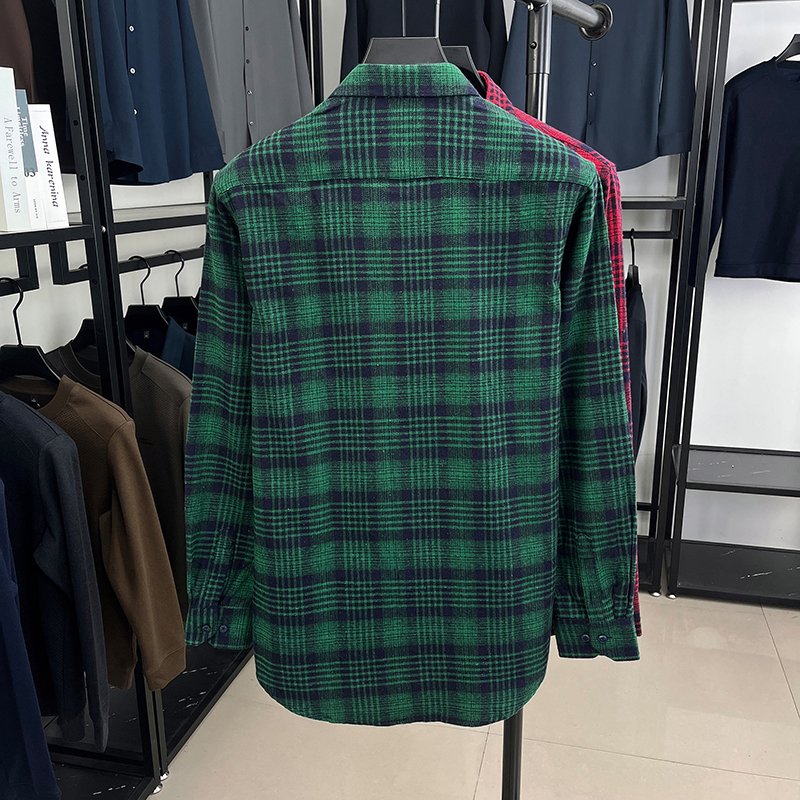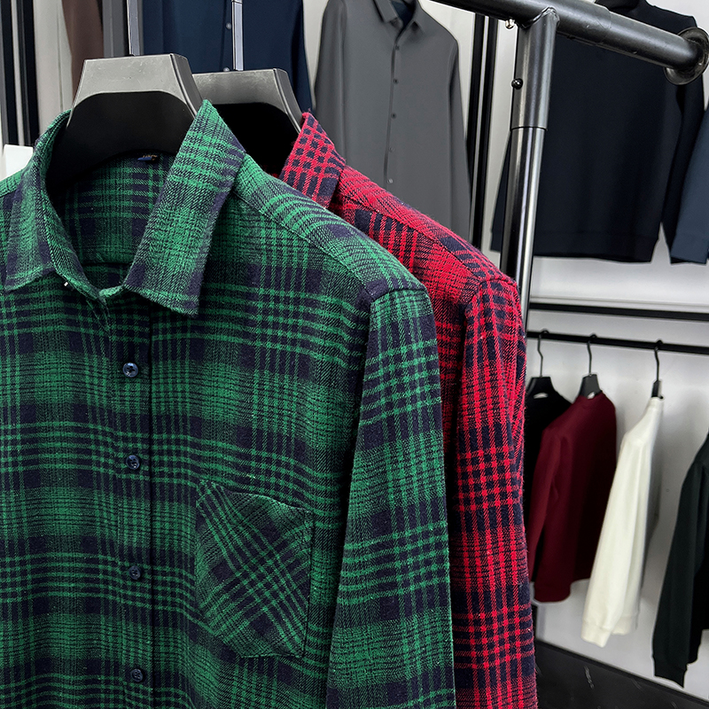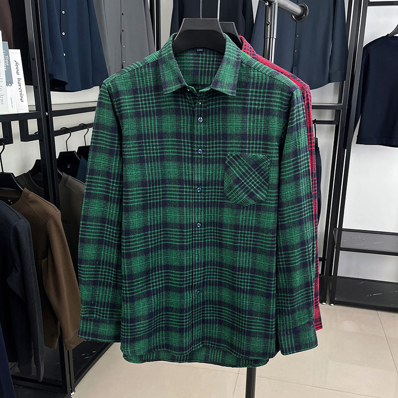 保罗100%纯棉磨毛长袖衬衫男翻领中年商务口袋上衣中年爸爸装高端