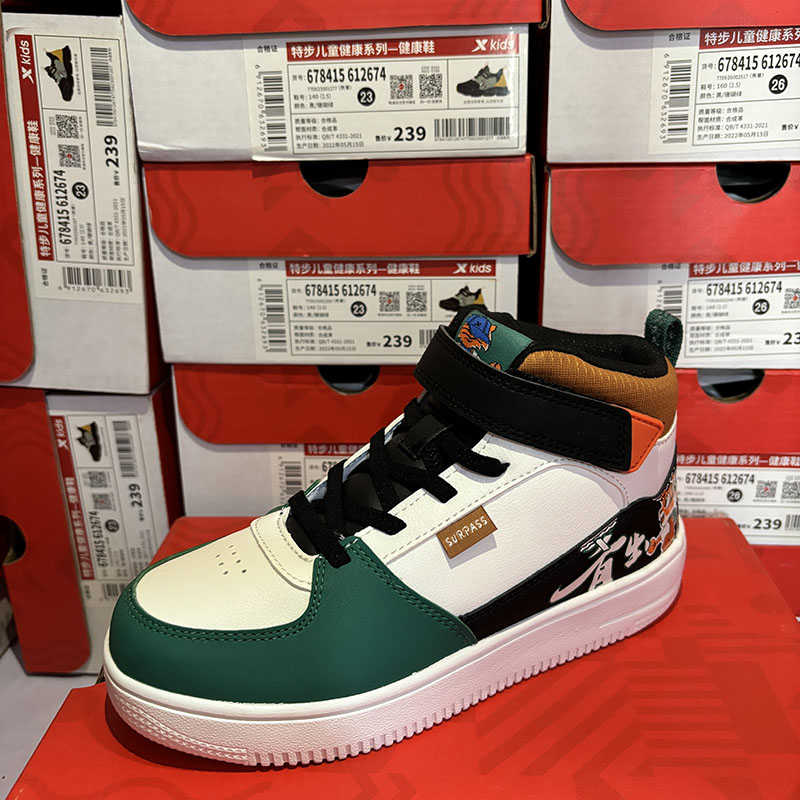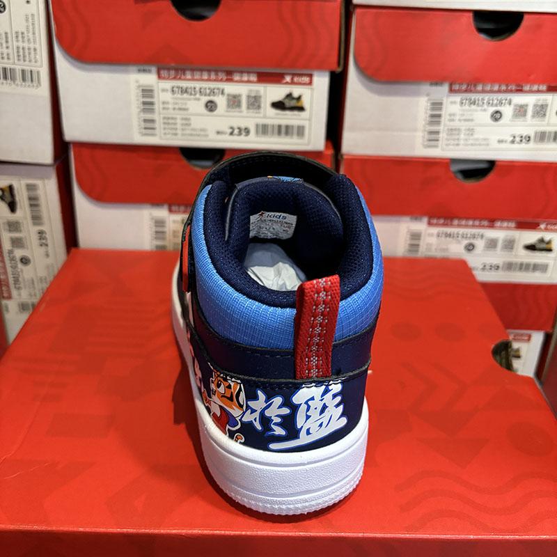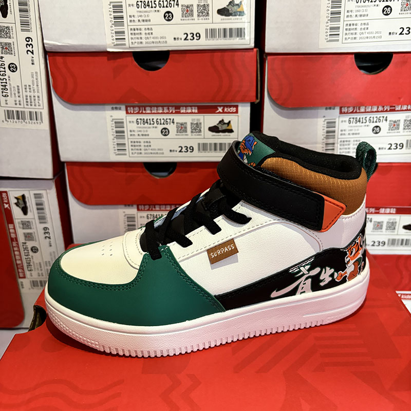 特步儿童正品秋冬皮面魔术贴休闲男童板鞋运动中帮鞋678415313669
