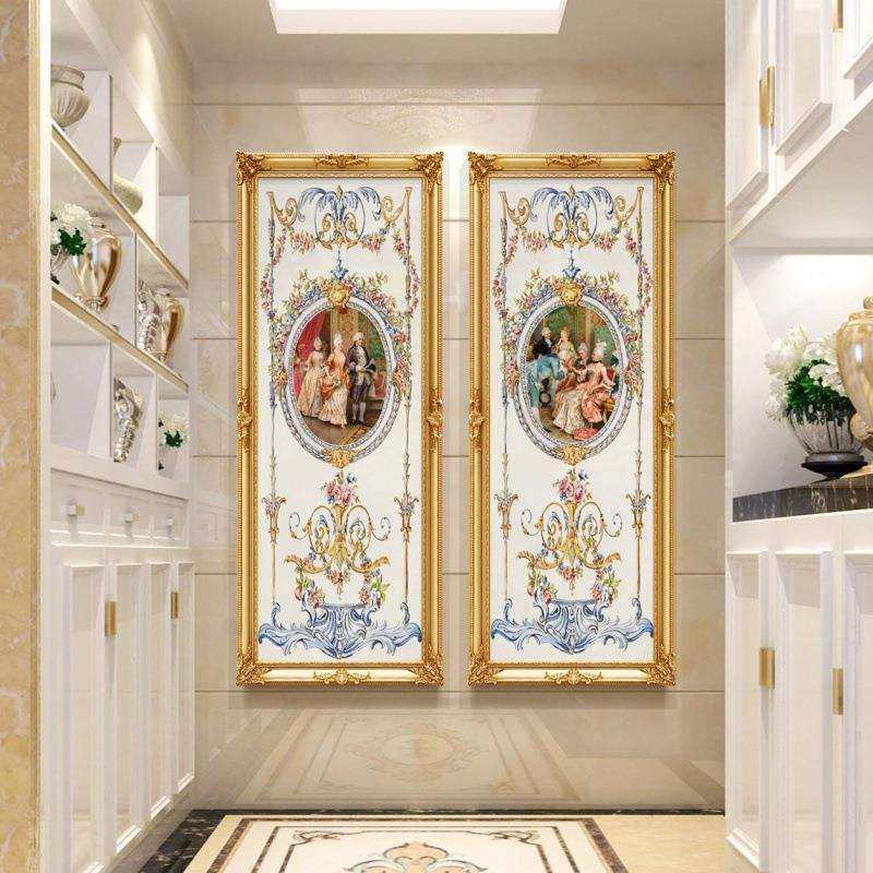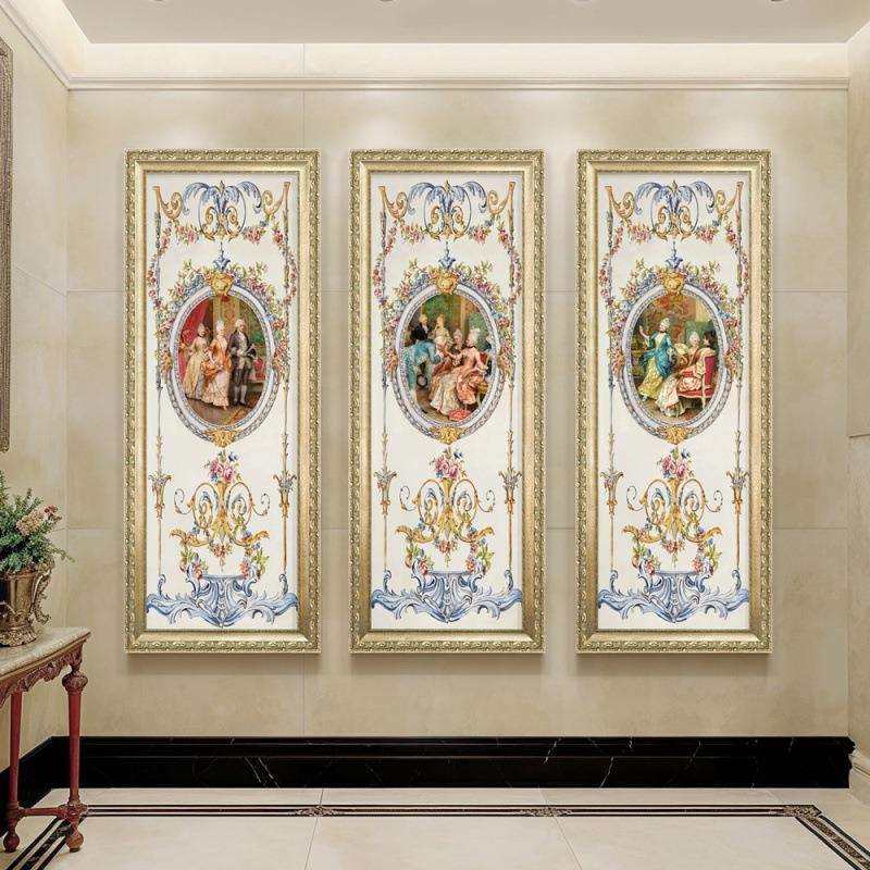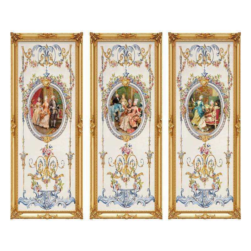 三联装饰画客厅挂画走廊过道玄关油画宫廷人物画欧式简欧壁画