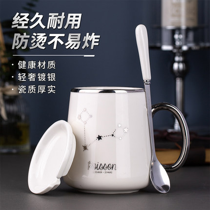 创意高颜值星座陶瓷水杯家用大容量马克杯北欧风格办公茶杯子男生