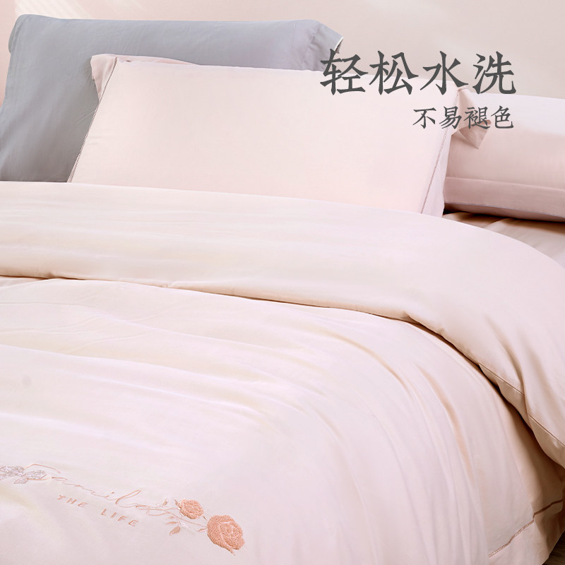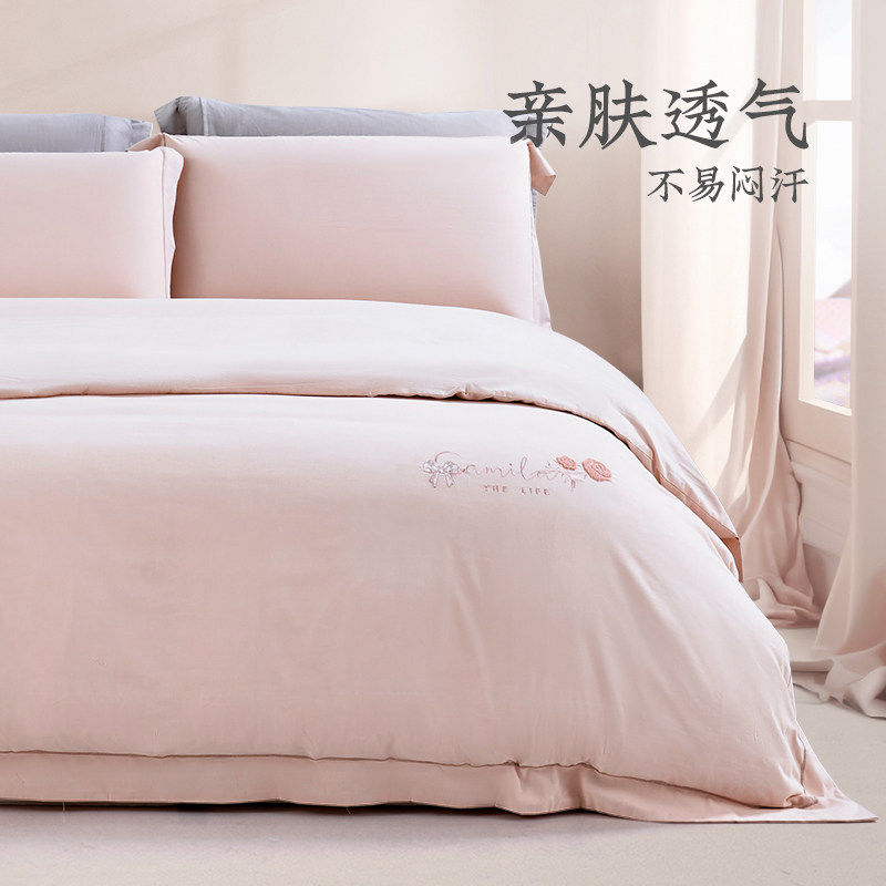 远梦家纺纯棉轻奢磨毛床单四件套夏季新款纯色单双人家用畅享生活