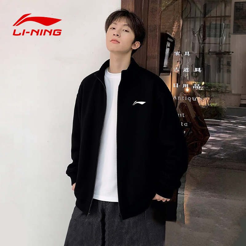 李宁外套男款立领开衫运动服春秋防风大码宽松卫衣休闲上衣夹克衫