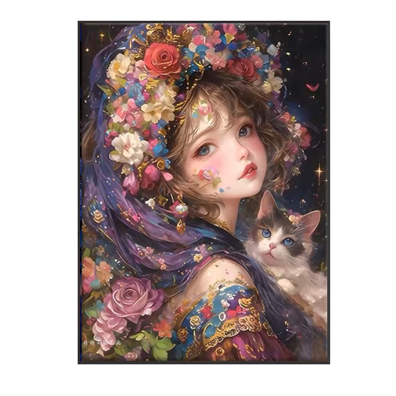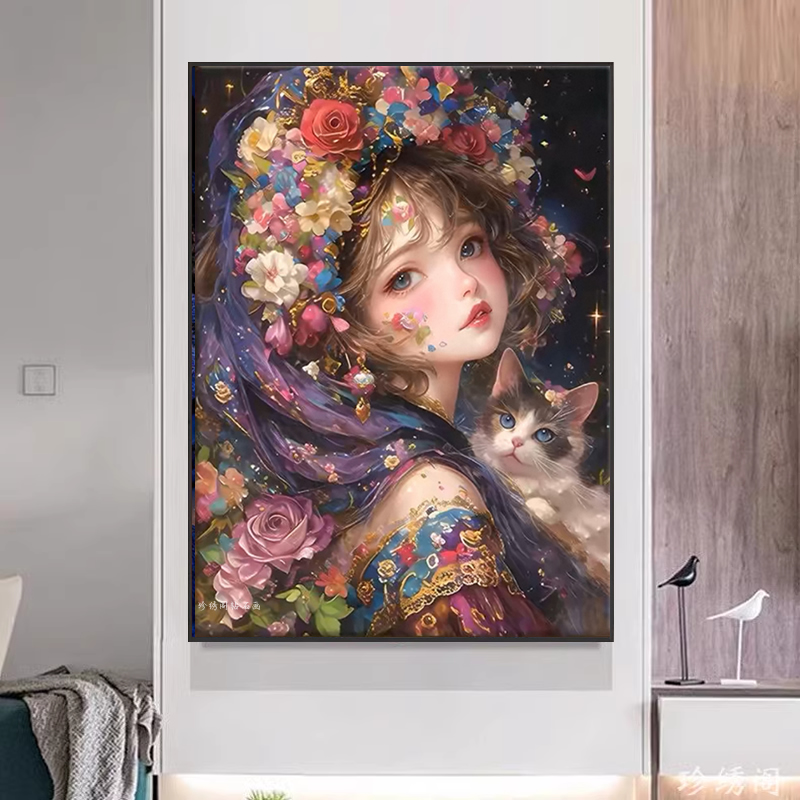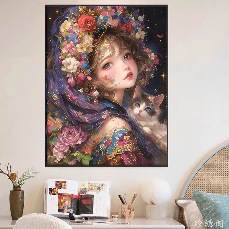 5d高难度女孩子超大钻石画新款猫咪女生卧室满贴点砖十字绣二次元