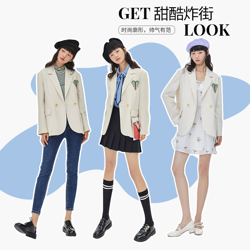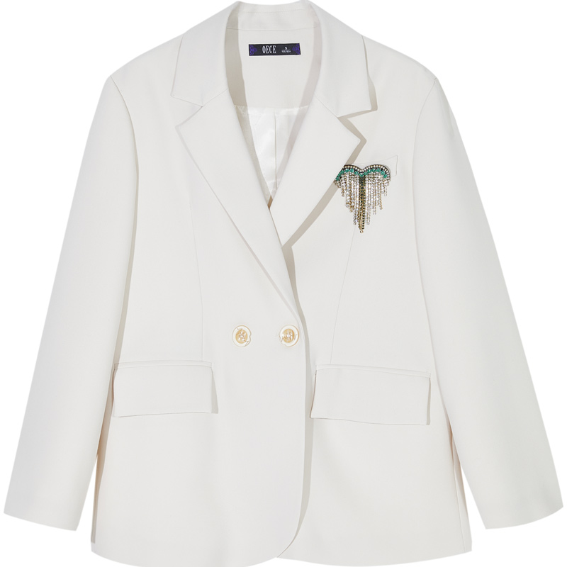 Oece小西装外套春秋新款女装设计感胸针气质西服高级感