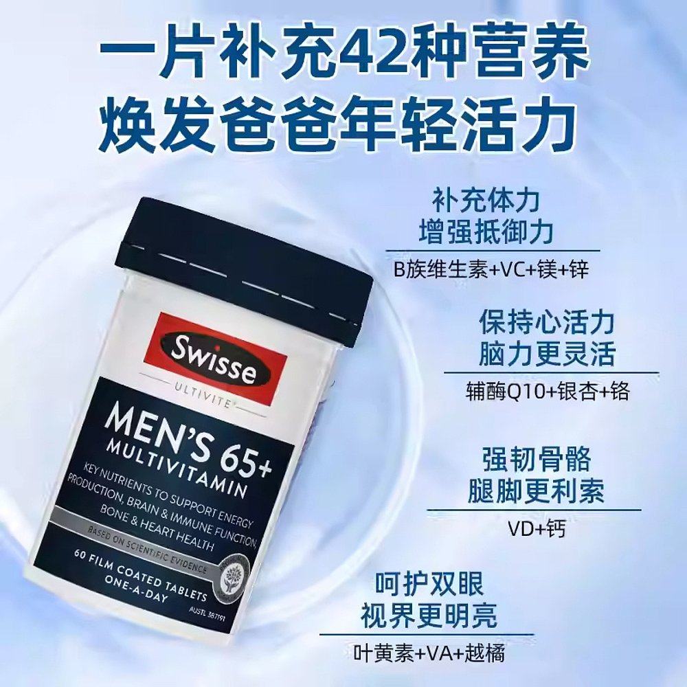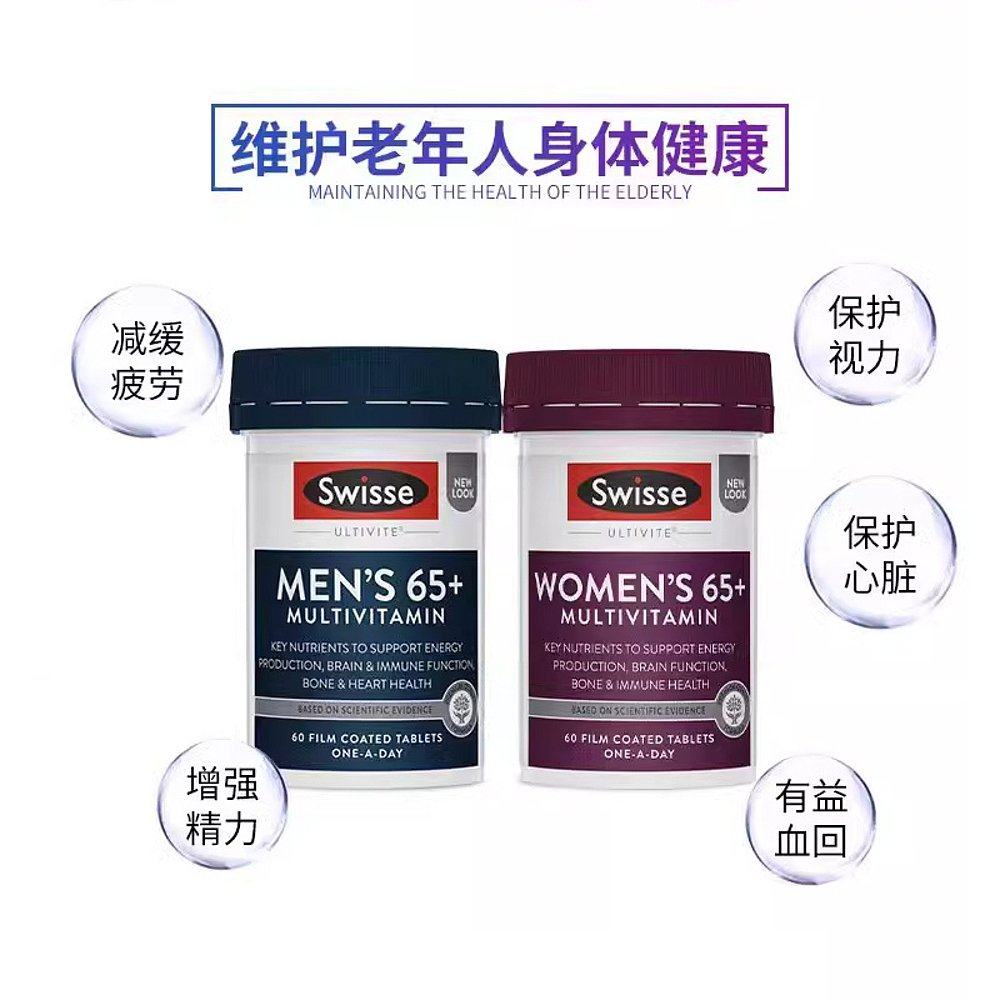 Swisse 斯维诗男士复合维生素65+ 60片/瓶营养补充剂片剂女士