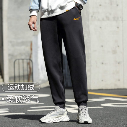 拓路者秋冬加绒加厚休闲运动卫裤男式百搭简约长裤保暖运动裤