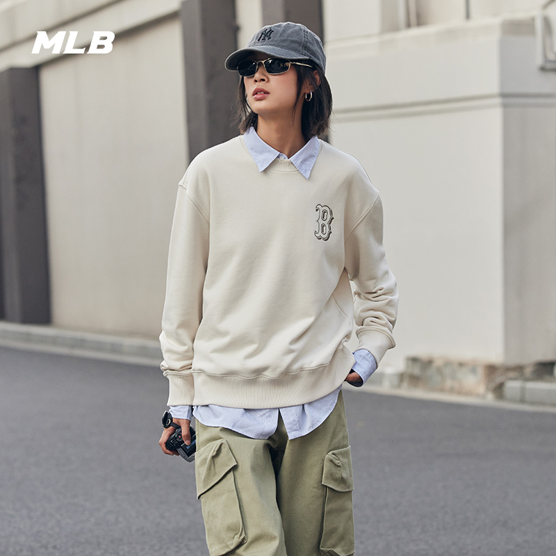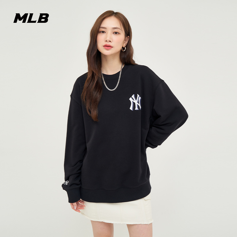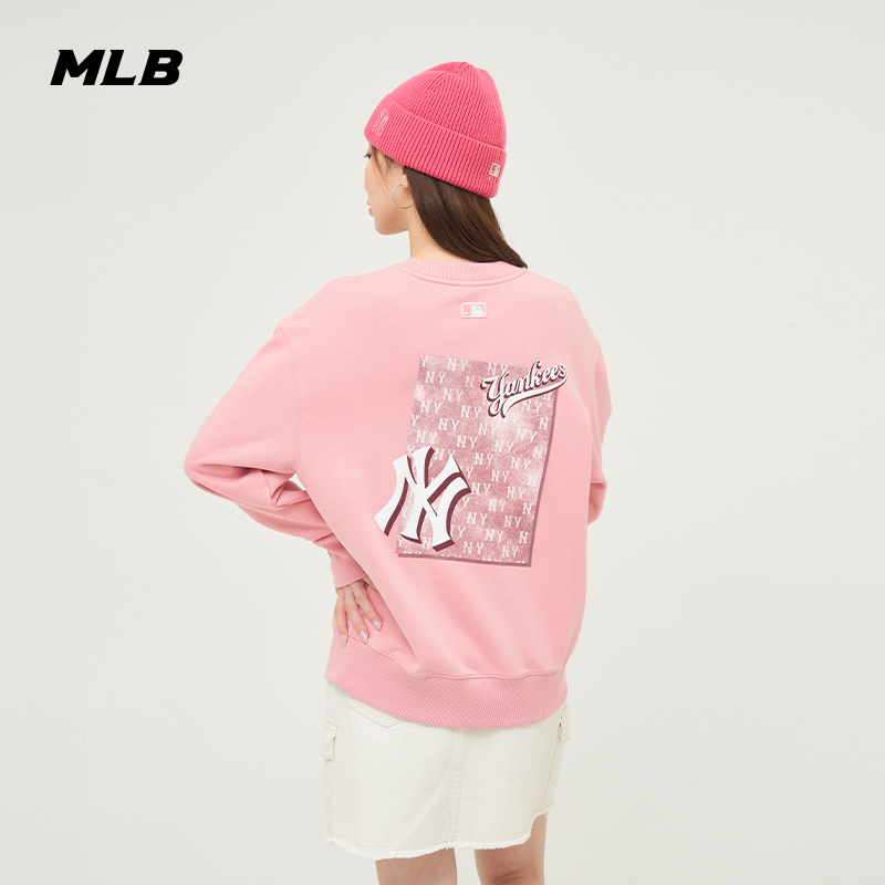 MLB官方情侣复古仿牛仔波普老花圆领运动宽松卫衣春夏MTM15