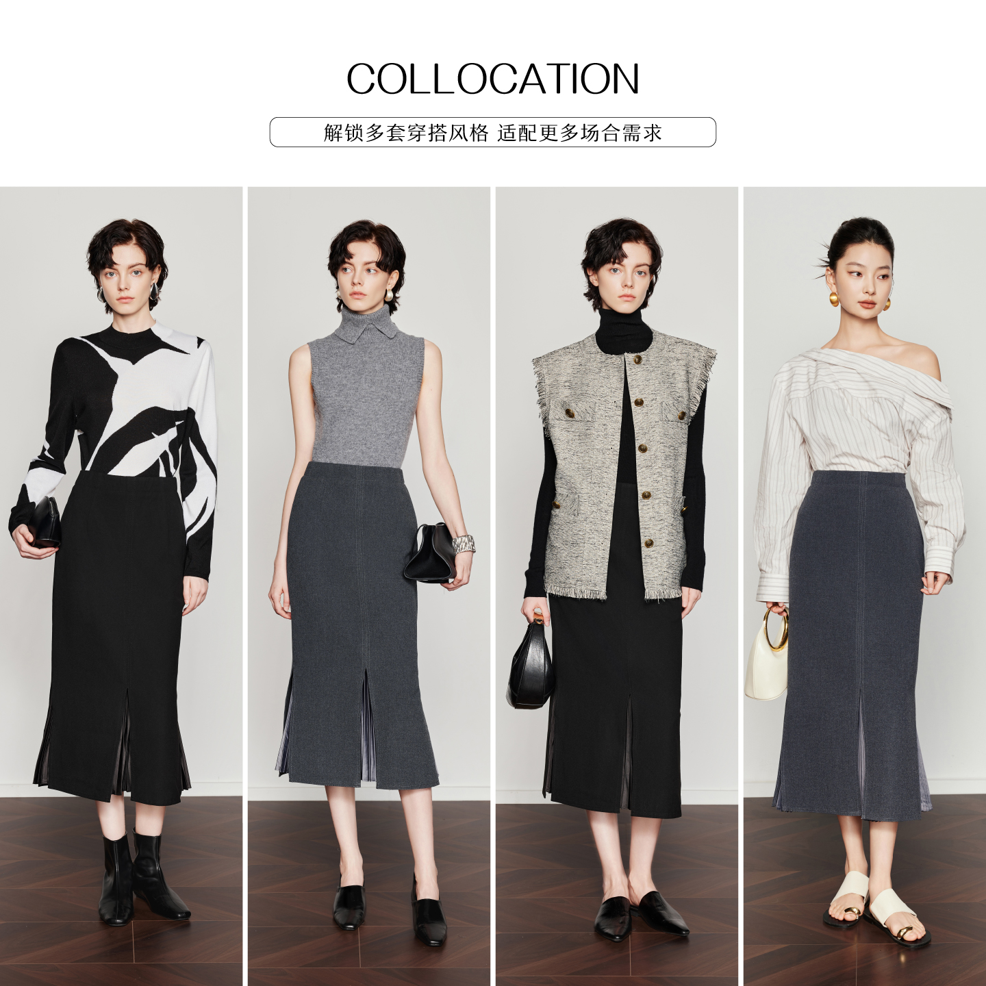 【优雅随型】CHICJOJO灰色半身裙女25秋新款百褶拼接鱼尾毛呢裙