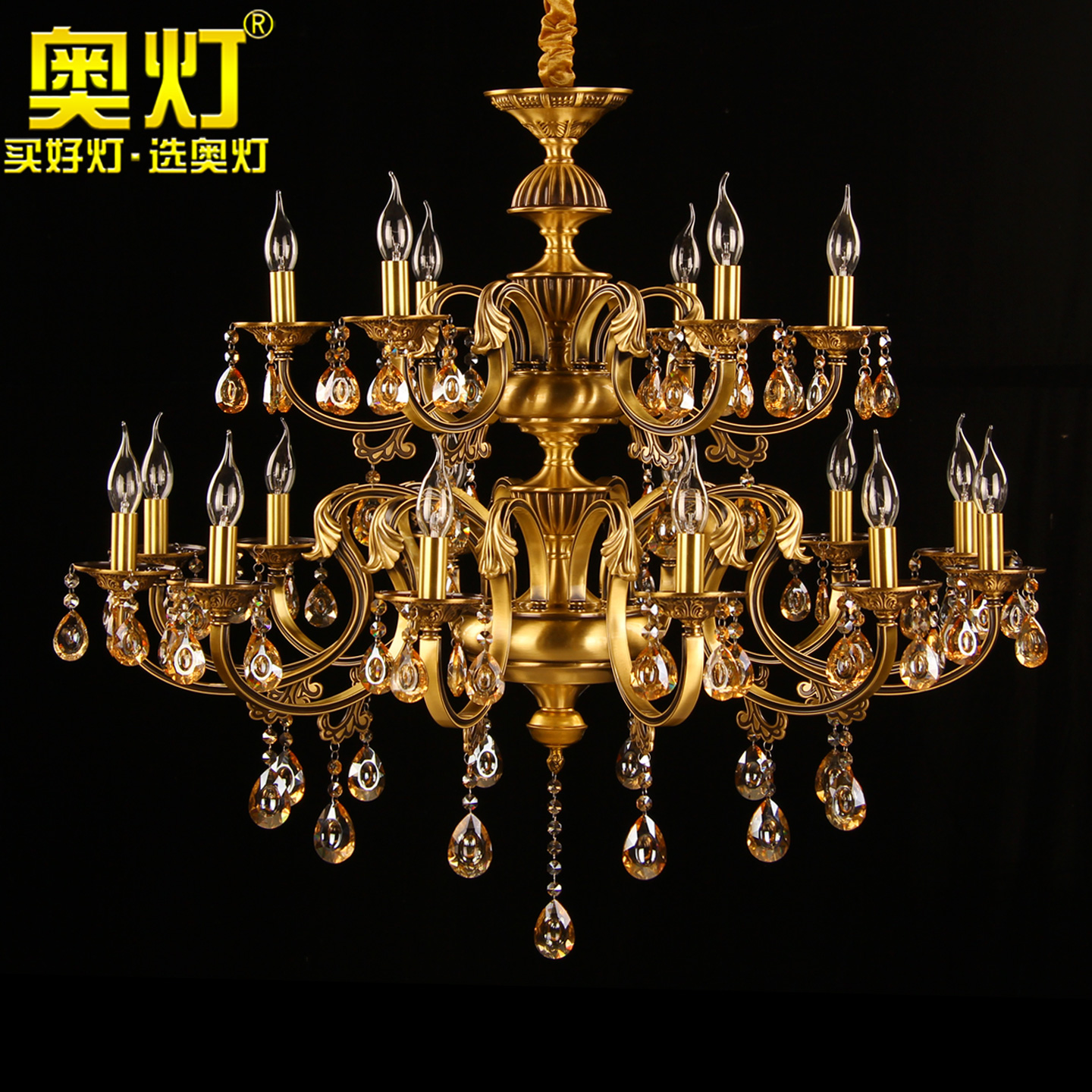 奥灯双层全铜吊灯别墅客厅挑高复古水晶灯欧式酒店工程蜡烛灯8981
